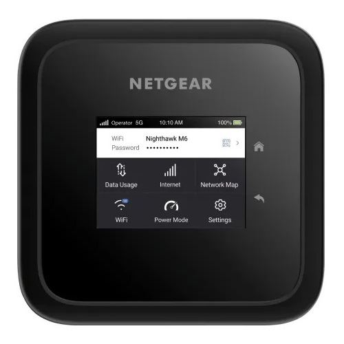 NETGEAR Nighthawk M6. Gerätetyp: Router für Mobilfunknetz, Produktfarbe: Schwarz, Marktpositionierung: Tragbar. Schnittstellentyp Ethernet-LAN: Gigabit Ethernet, Ethernet LAN Datentransferraten: 10,100,1000 Mbit/s, Unterstützte Netzwerkprotokolle: IPv6. WLAN-Standards: 802.11a, 802.11b, 802.11g, Wi-Fi 4 (802.11n), Wi-Fi 5 (802.11ac), Wi-Fi 6 (802.11ax), WLAN-Frequenz: 5 GHz. Datennetzwerk: 4G, 5G, LTE, 4G-Standards: LTE. USB-Port-Typ: USB Typ-C
