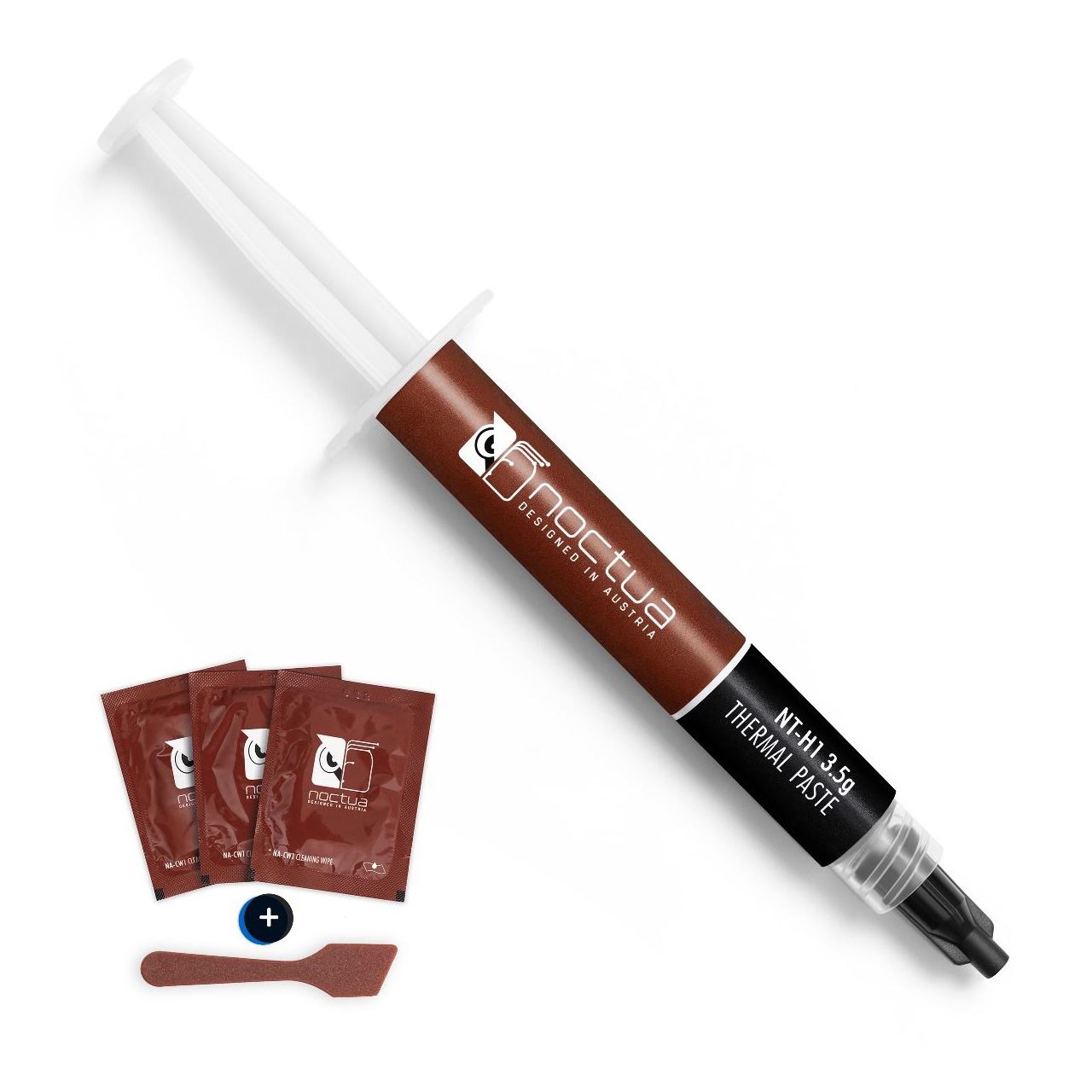 Noctuas NT-H1 ist eine renommierte Hybrid-Wärmeleitpaste, die mehr als 150 Empfehlungen und Auszeichnungen internationaler Hardware-Webseiten und -Magazine erhalten hat. Dank ausgezeichneter Performance, außergewöhnlichem Anwendungskomfort und hervorragender Langzeitstabilität hat sie sich zu einem Favoriten der internationalen Übertakter- und Enthusiasten-Szene entwickelt. Ganz gleich, ob es sich um Luft- oder Wasserkühlung, CPU- oder GPU-Anwendungen, Overclocking oder Silent-Systeme handelt: NT-H1 ist eine bewährte Premium-Lösung, die bedeutet beste Ergebnisse liefert!. Die SW (Spatula & Wipes) Edition beinhaltet eine Spachtel für Anwender, die es bevorzugen, ihre Wärmeleitpaste vor der Montage des Kühlers manuell zu verstreichen, sowie drei NA-CW1 Reinigungstücher zur einfachen Entfernung.