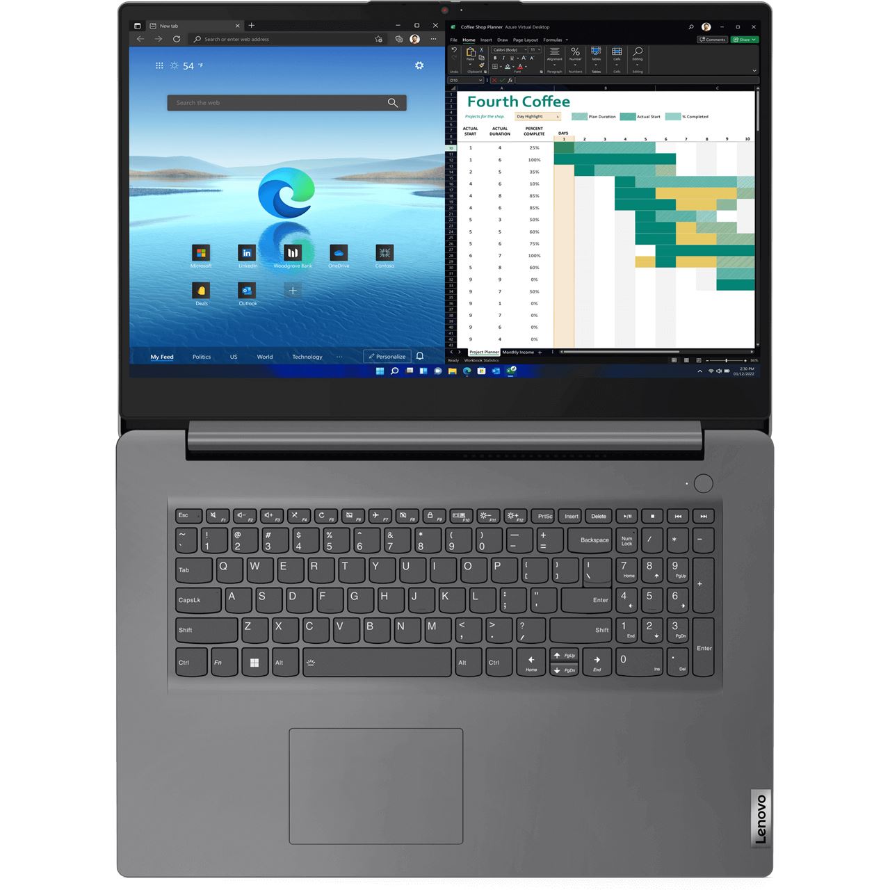 Lenovo V17 G4 IRU. Produkttyp: Laptop, Formfaktor: Klappgehäuse. Prozessorfamilie: Intel® Core™ i5, Prozessor: i5-13420H. Bildschirmdiagonale: 43,9 cm (17.3"), HD-Typ: Full HD, Display-Auflösung: 1920 x 1080 Pixel. Speicherkapazität: 16 GB, Interner Speichertyp: DDR4-SDRAM. Gesamtspeicherkapazität: 512 GB, Speichermedien: SSD. Eingebautes Grafikkartenmodell: Intel® UHD Graphics. Installiertes Betriebssystem: Windows 11 Home. Produktfarbe: Grau. Gewicht: 2,02 kg