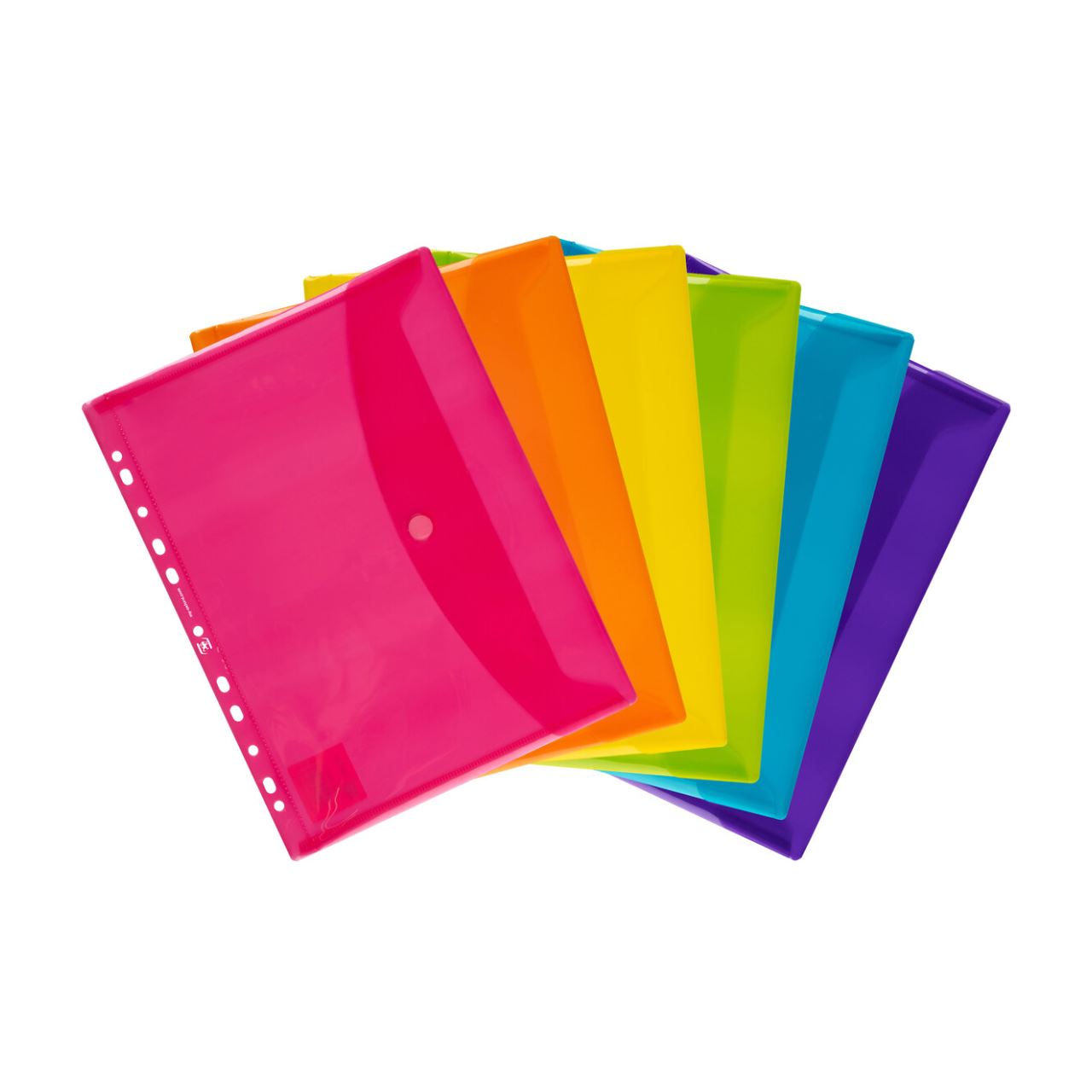 Oxford Dokumententasche, A4, PP, 0,2 mm, glasklar, blendfrei, dokumentenecht, oben offen mit Klettbandverschluss, 6 Stück im Beutel farblich sortiert