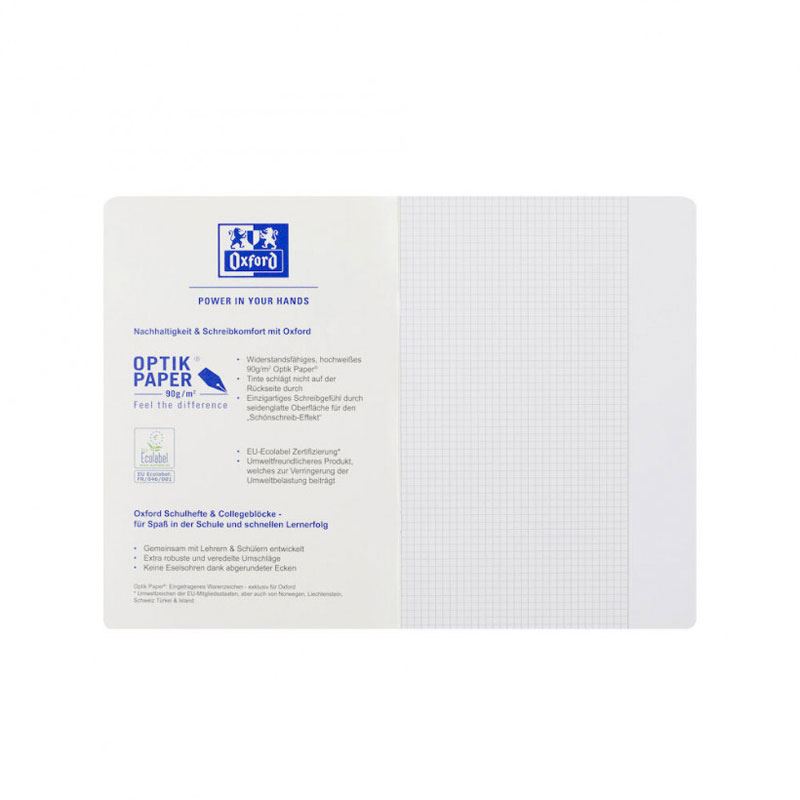 Das karierte A4 Schulheft mit weißem Rand aus hoch veredeltem 90 g/m² Papier (OPTIK PAPER®) für optimale Schreibergebnisse, ausgestattet mit einem robusten Umschlag in einzigartiger Haptik. Das Schulheft verbindet innovative TOUCH Optik mit cooler Farbgebung zu einem trendigen Begleiter im Schulalltag.