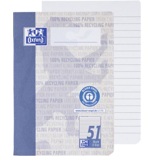 OXFORD Schulhefte Recycling Lineatur 52 liniert DIN A6 ohne Rand, 32 Blatt