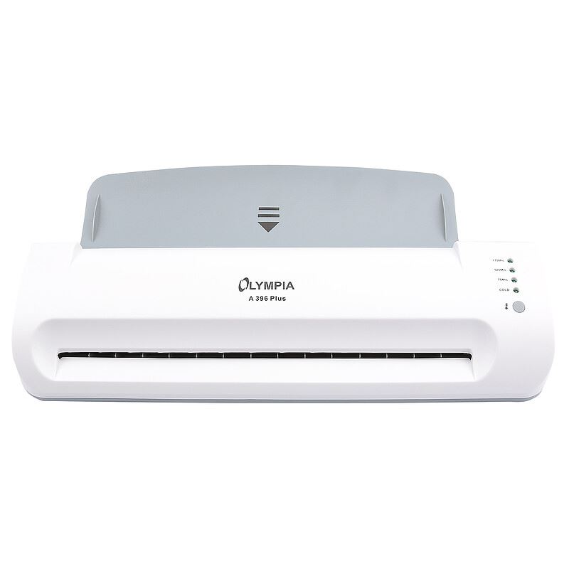 Olympia A396 Plus. Maximale Laminierungbreite: 33 cm, Typ: Kalt-/Warmlaminator, Vorwärmzeit: 5 min. Stromverbrauch (Standardbetrieb): 350 W, AC Eingangsspannung: 220-240 V, AC Eingangsfrequenz: 50 Hz. Breite: 434 mm, Tiefe: 131 mm, Höhe: 70 mm