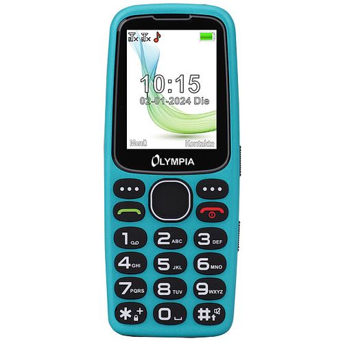 Olympia STAR. Formfaktor: Balken. SIM-Kartensteckplätze: Dual-SIM. Bildschirmdiagonale: 6,1 cm (2.4"). Bluetooth. FM-Radio. Akku-/Batterietechnologie: Lithium-Ion (Li-Ion), Standby-Zeit (2G): 168 h. Gewicht: 92 g. Produktfarbe: Schwarz, Türkis