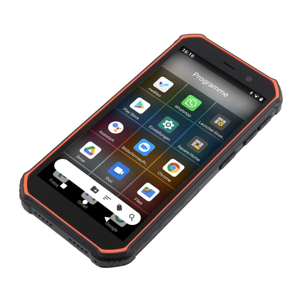 Olympia TREK Outdoor-Smartphone - 4G-Standard Standard - Frequenzband: 850/900/1800/1900Mhz, WCDMA 900/2100MHZ, FDD LTE B1/B3/B7/B8/B20 - Android 10 - 3 GB Arbeitsspeicher / 32 GB Datenspeicher - Micro SD Kartenslot für bis zu max. 64GB - 5.5" Farbdis
