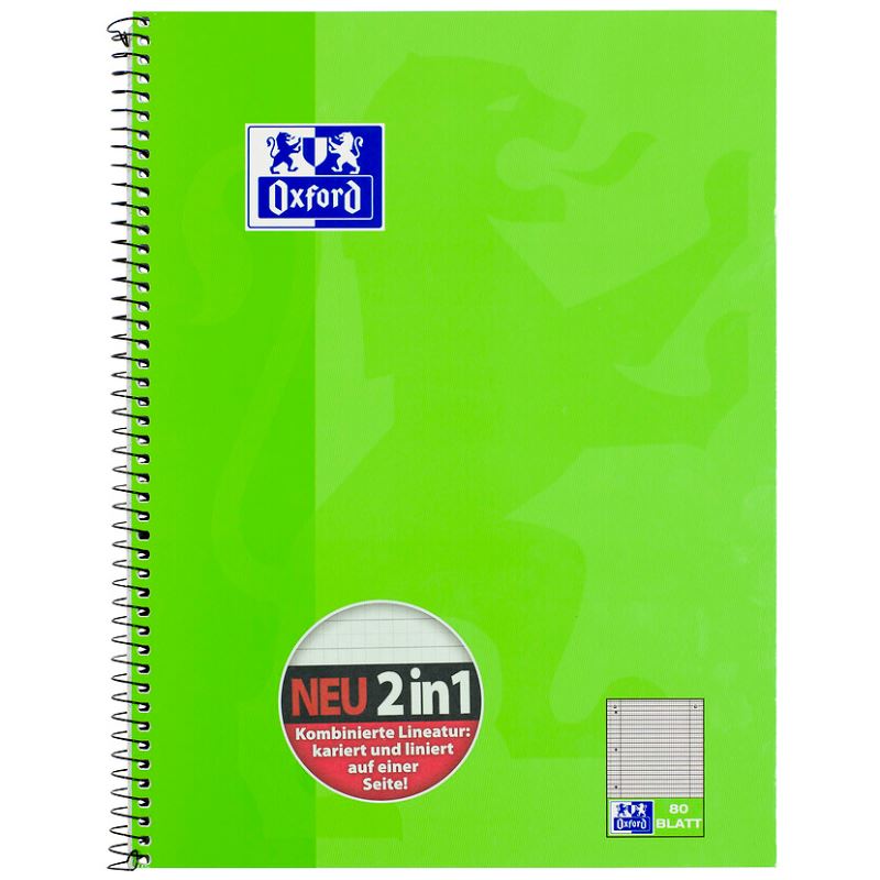 kombinierte Lineatur: kariert und liniert auf einer Seite, 80 Blatt, 90 g/qm, robuster, abwischbarer Umschlag, 4-fach Lochung, mit Microperforation und Ausreißhilfe (neu: 100050362 / alt: 384408055)