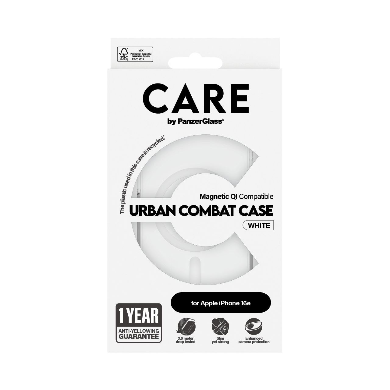 PanzerGlass CARE™ by ® Urban Combat Case Transparent m. Weiß Qi Compatible iPhone 17e | 16e. Etui-Typ: Cover, Markenkompatibilität: Apple, Kompatibilität: Apple - iPhone 16e, Apple - iPhone 17e, Produktfarbe: Transparent