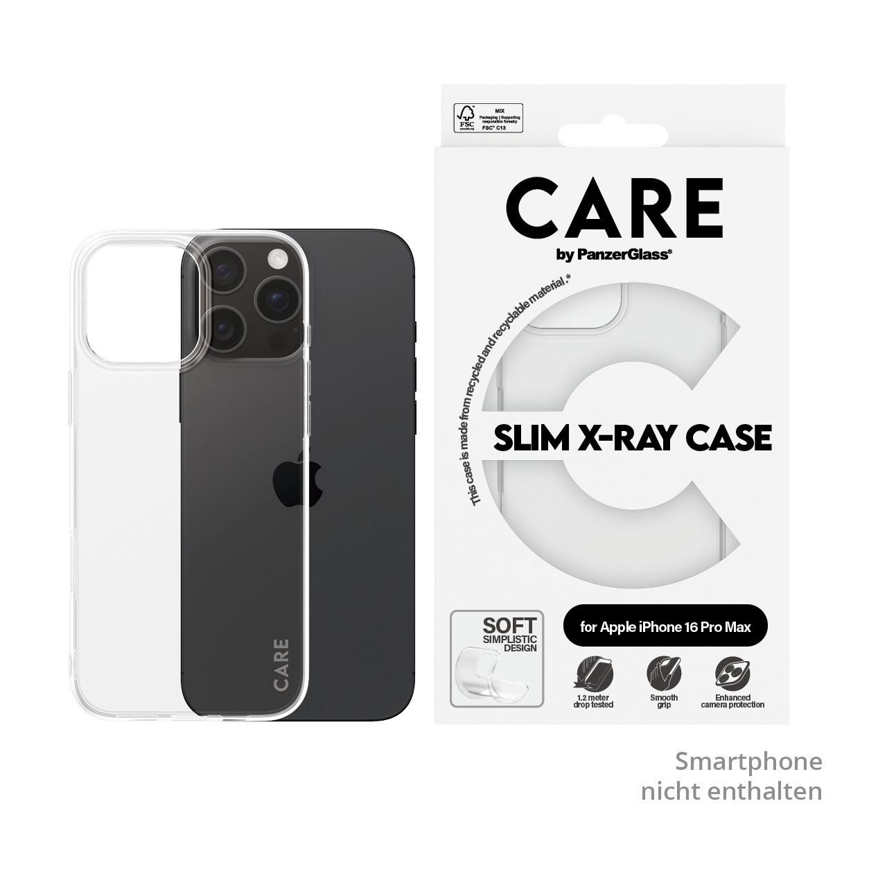 PanzerGlass CARE™ by ® X-Ray Case iPhone 16 Pro Max. Etui-Typ: Cover, Markenkompatibilität: Apple, Kompatibilität: Apple - iPhone 16 Pro Max, Produktfarbe: Transparent