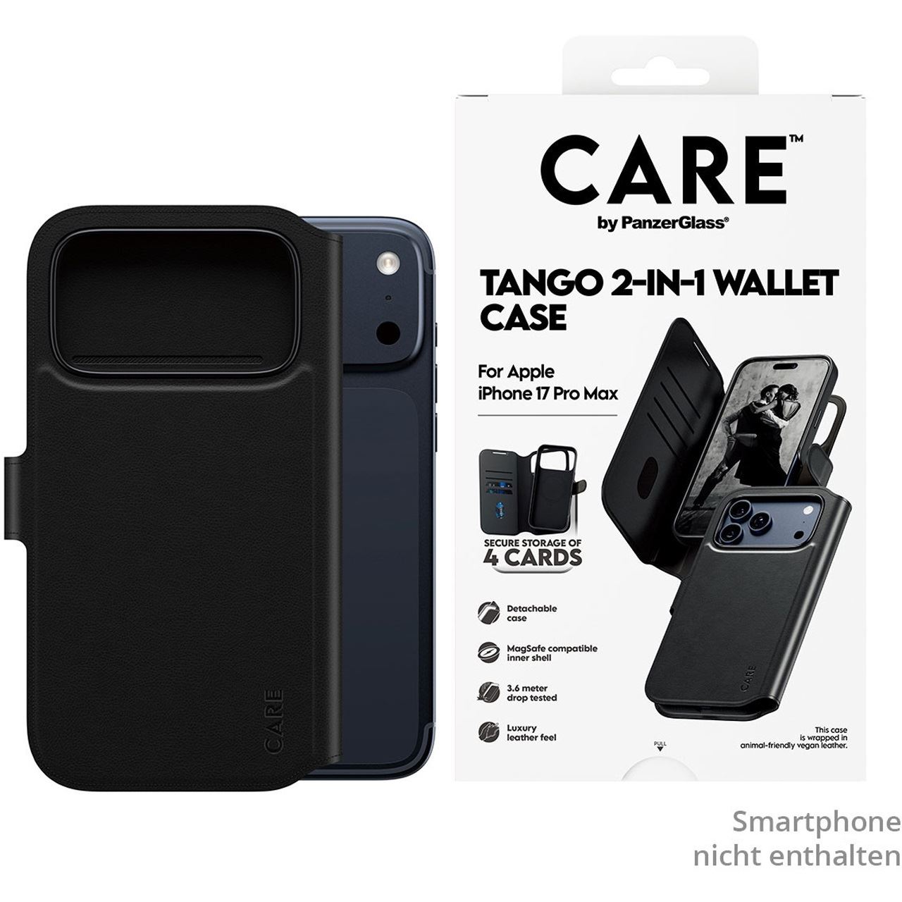 PanzerGlass CARE™ by ® Tango 2-in-1 Wallet Case m. MagSafe iPhone 17 Pro Max. Etui-Typ: Cover, Markenkompatibilität: Apple, Kompatibilität: Apple - iPhone 17 Pro Max, Produktfarbe: Schwarz