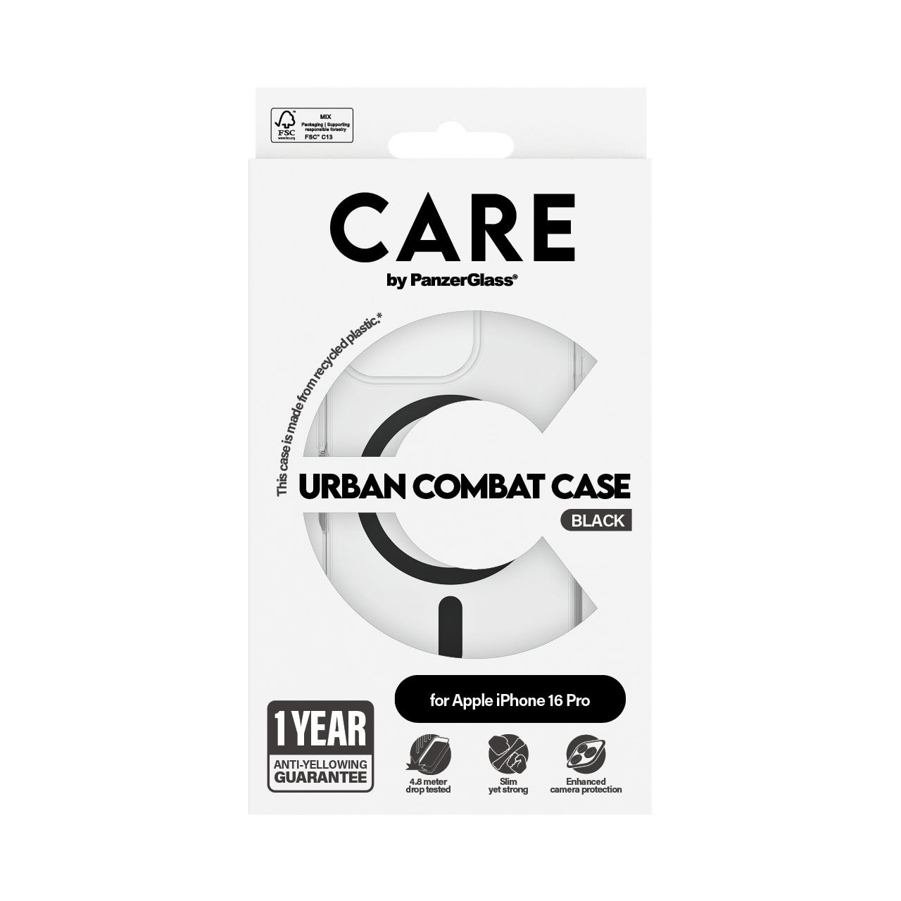 PanzerGlass CARE™ by ® Urban Combat Case Transparent m. Schwarz MagSafe iPhone 16 Pro. Etui-Typ: Cover, Markenkompatibilität: Apple, Kompatibilität: Apple - iPhone 16 Pro, Produktfarbe: Schwarz