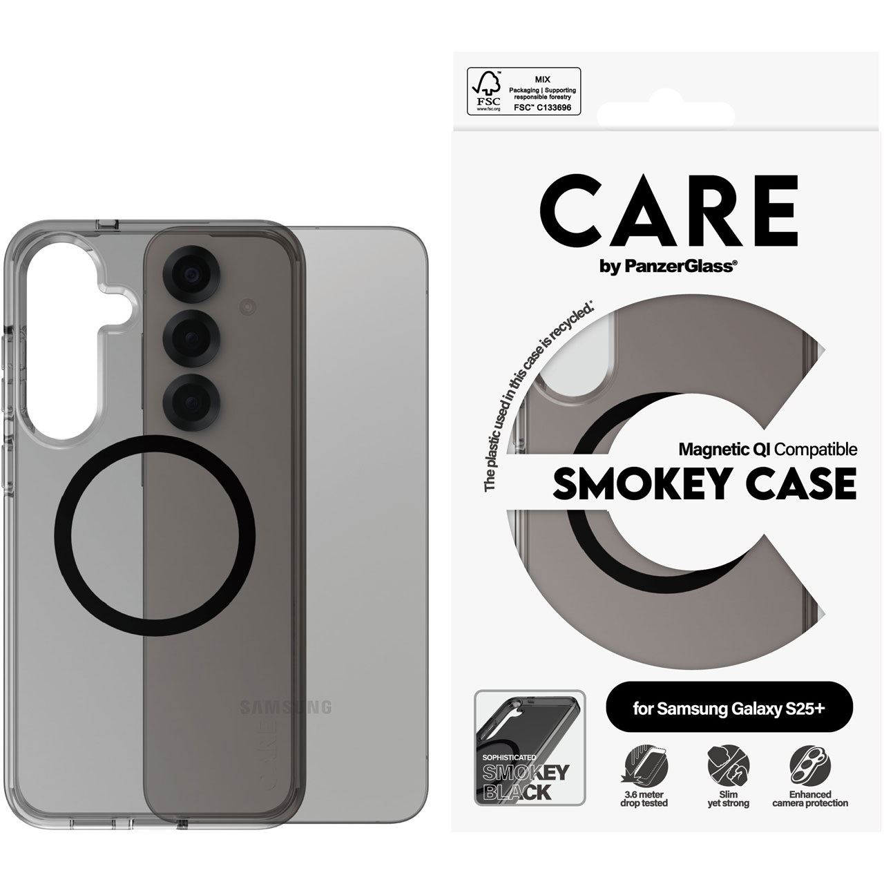 PanzerGlass CARE™ by ® Urban Combat Case Smokey m. Schwarz Qi Compatible Samsung Galaxy S25+. Etui-Typ: Cover, Markenkompatibilität: Samsung, Kompatibilität: Samsung - Galaxy S25+, Produktfarbe: Schwarz