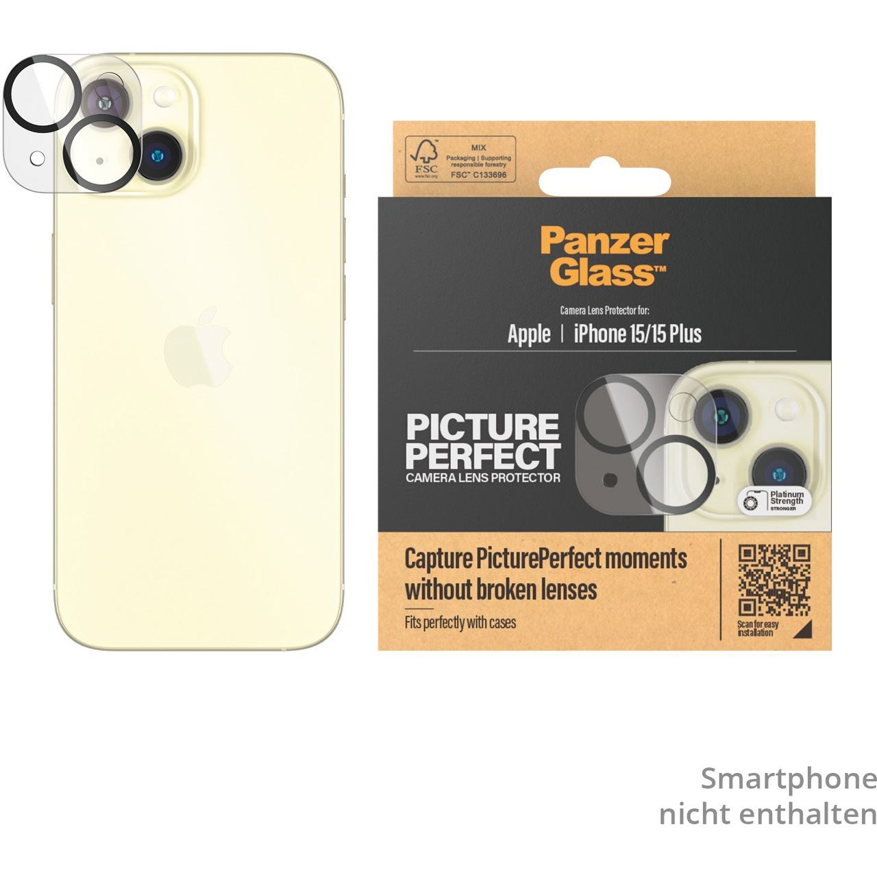 PanzerGlass ® PicturePerfect Kameraschutz iPhone 15 | 15 Plus. Markenkompatibilität: Apple, Kompatibilität: Apple - iPhone 15, Apple - iPhone 15 Plus. Trockene Anwendung. Schutzfunktion: Kratzresistent, Schockresistent. Material: Gehärtetes Glas, Produktfarbe: Transparent. Menge pro Packung: 1 Stück(e)