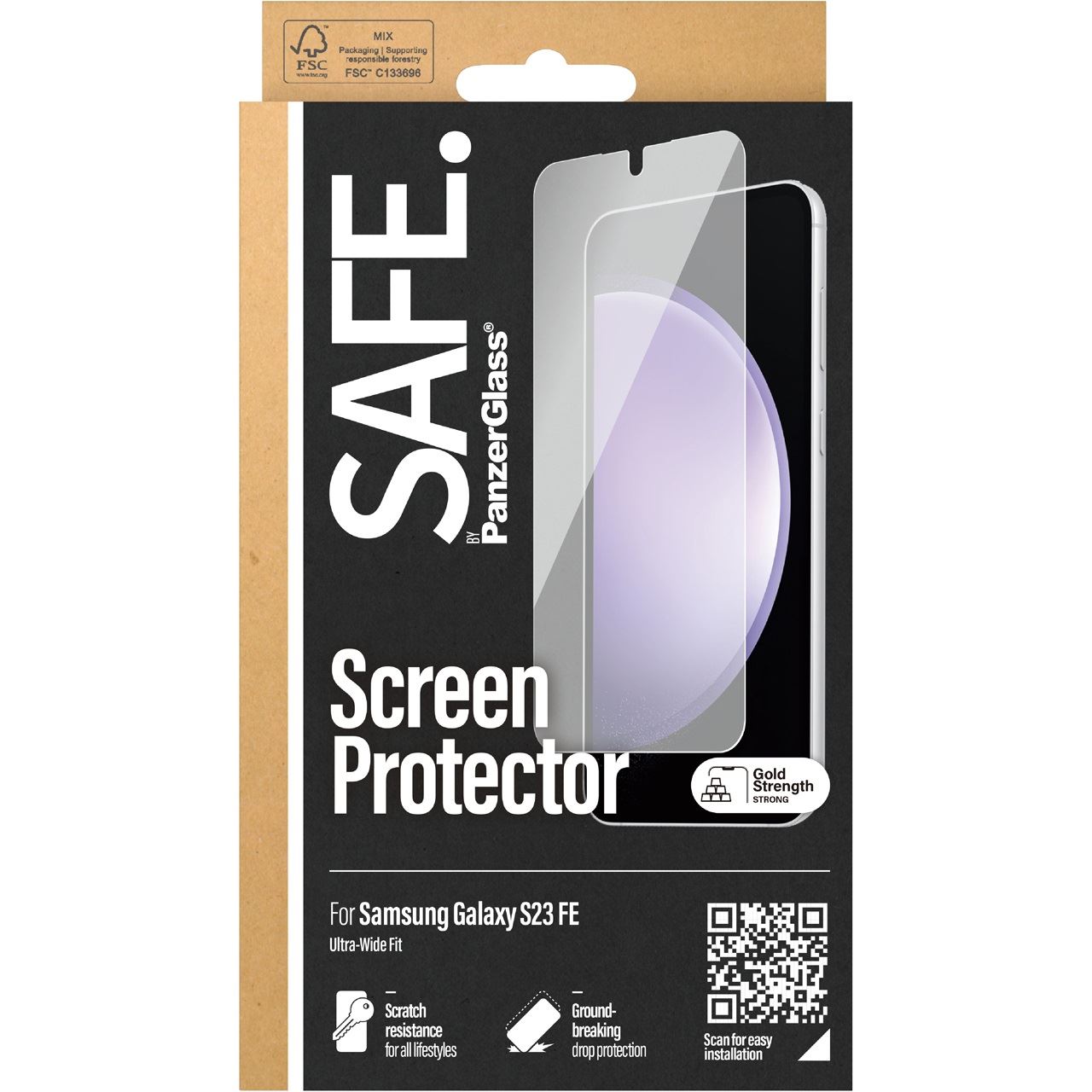 PanzerGlass SAFE. by ® Displayschutz Samsung Galaxy S FE 2023 | Ultra-Wide Fit. Markenkompatibilität: Samsung, Kompatibilität: Samsung - Galaxy S23 FE. Trockene Anwendung. Schutzfunktion: Kratzresistent, Schockresistent. Material: Gehärtetes Glas, Polyethylenterephthalat, Silikon, Produktfarbe: Transparent. Menge pro Packung: 1 Stück(e)
