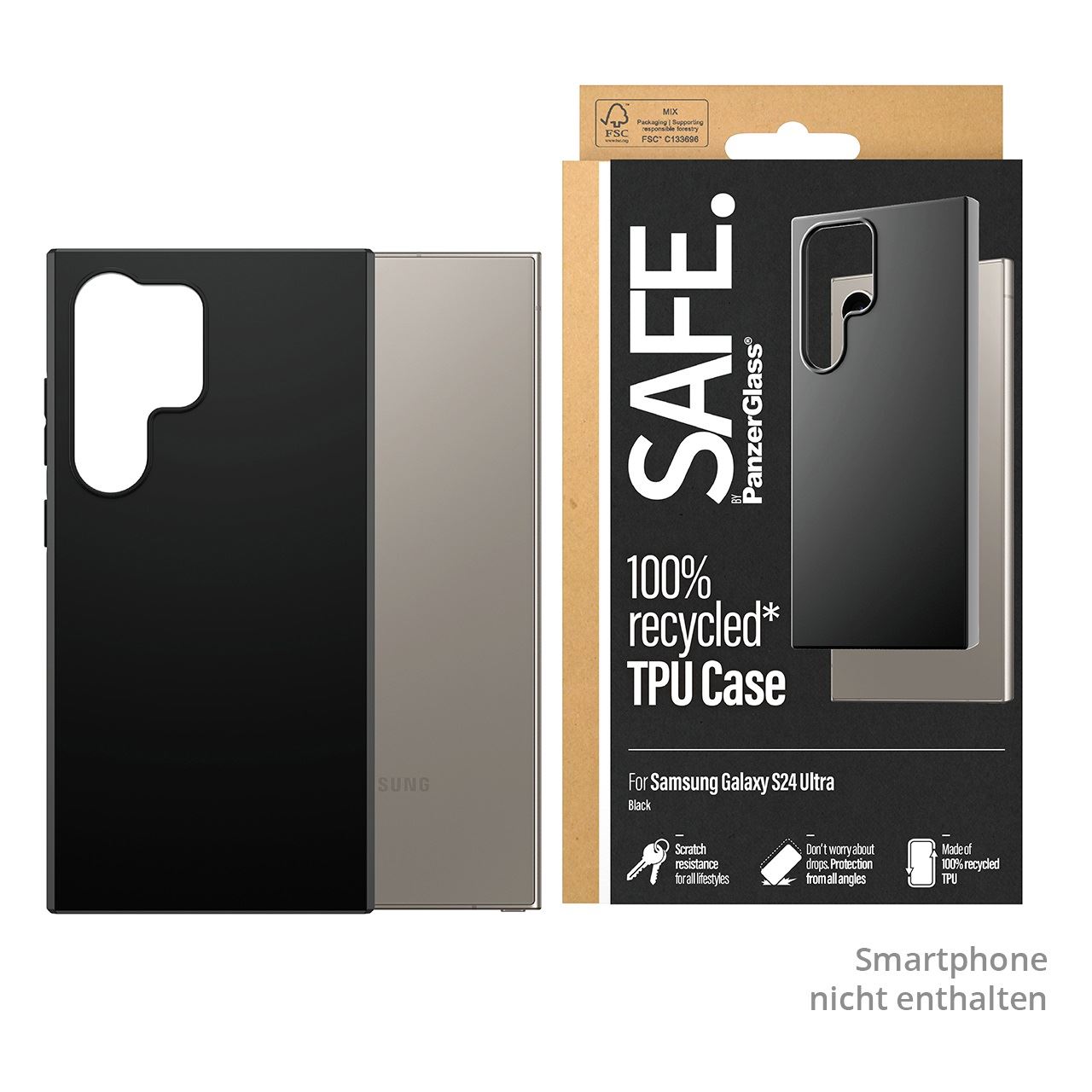 PanzerGlass SAFE. by ® TPU Case Samsung Galaxy S24 Ultra | Schwarz. Etui-Typ: Cover, Markenkompatibilität: Samsung, Kompatibilität: Samsung - Galaxy S24 Ultra, Produktfarbe: Schwarz
