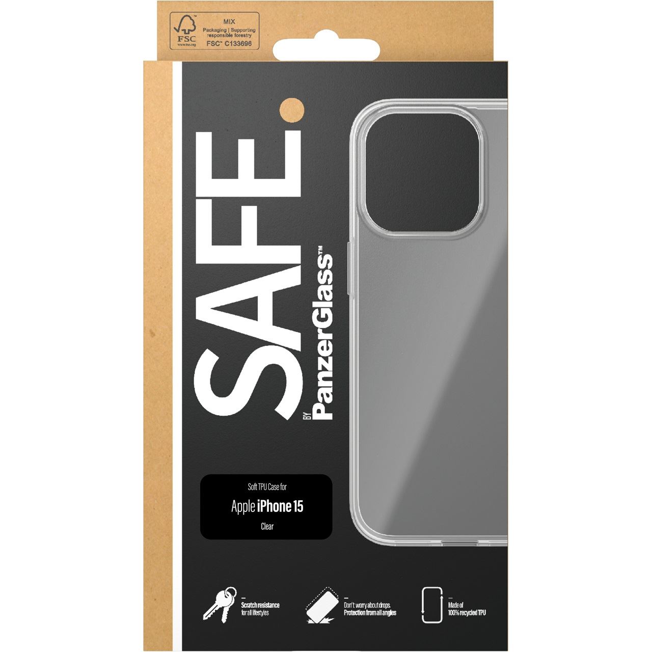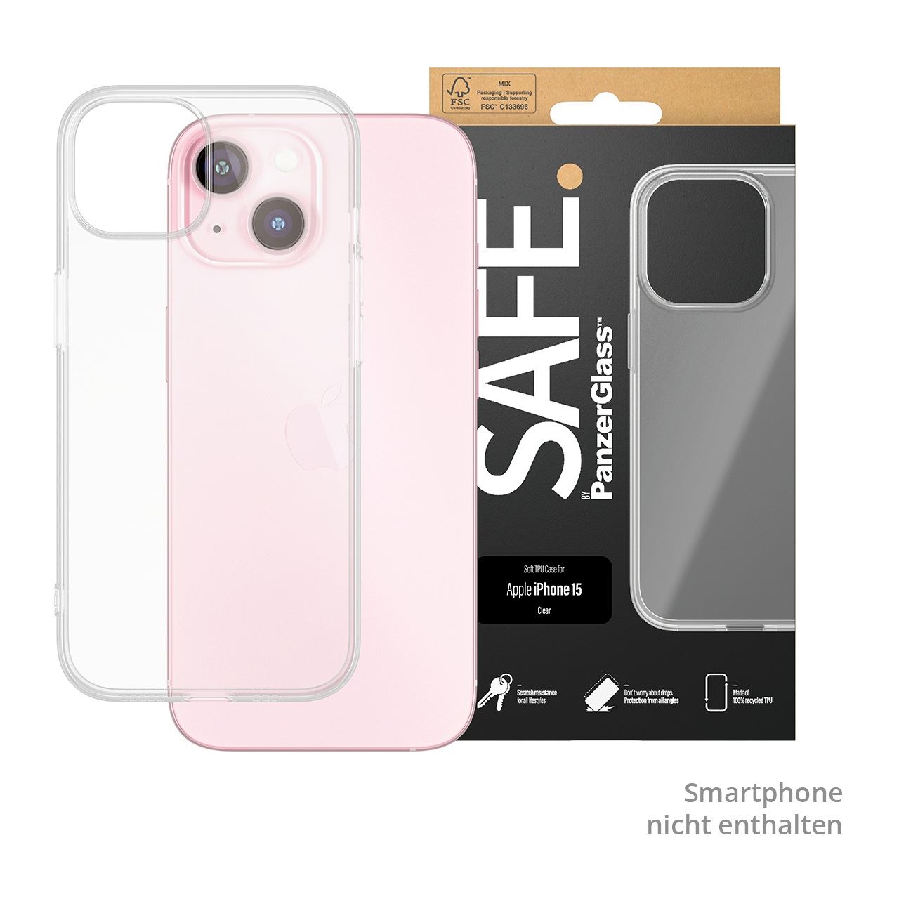 PanzerGlass SAFE. by ® TPU Case Transparent iPhone 15. Etui-Typ: Cover, Markenkompatibilität: Apple, Kompatibilität: Apple - iPhone 15, Produktfarbe: Transparent