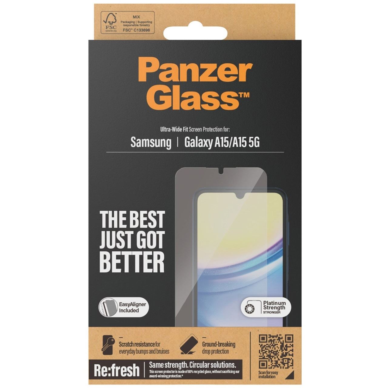 PanzerGlass 7349. Markenkompatibilität: Samsung, Kompatibilität: Galaxy A15, A15 5G, Schutzfunktion: Stoßfest, Fallbeständig, Kratzresistent. Produktfarbe: Transparent. Menge pro Packung: 1 Stück(e)