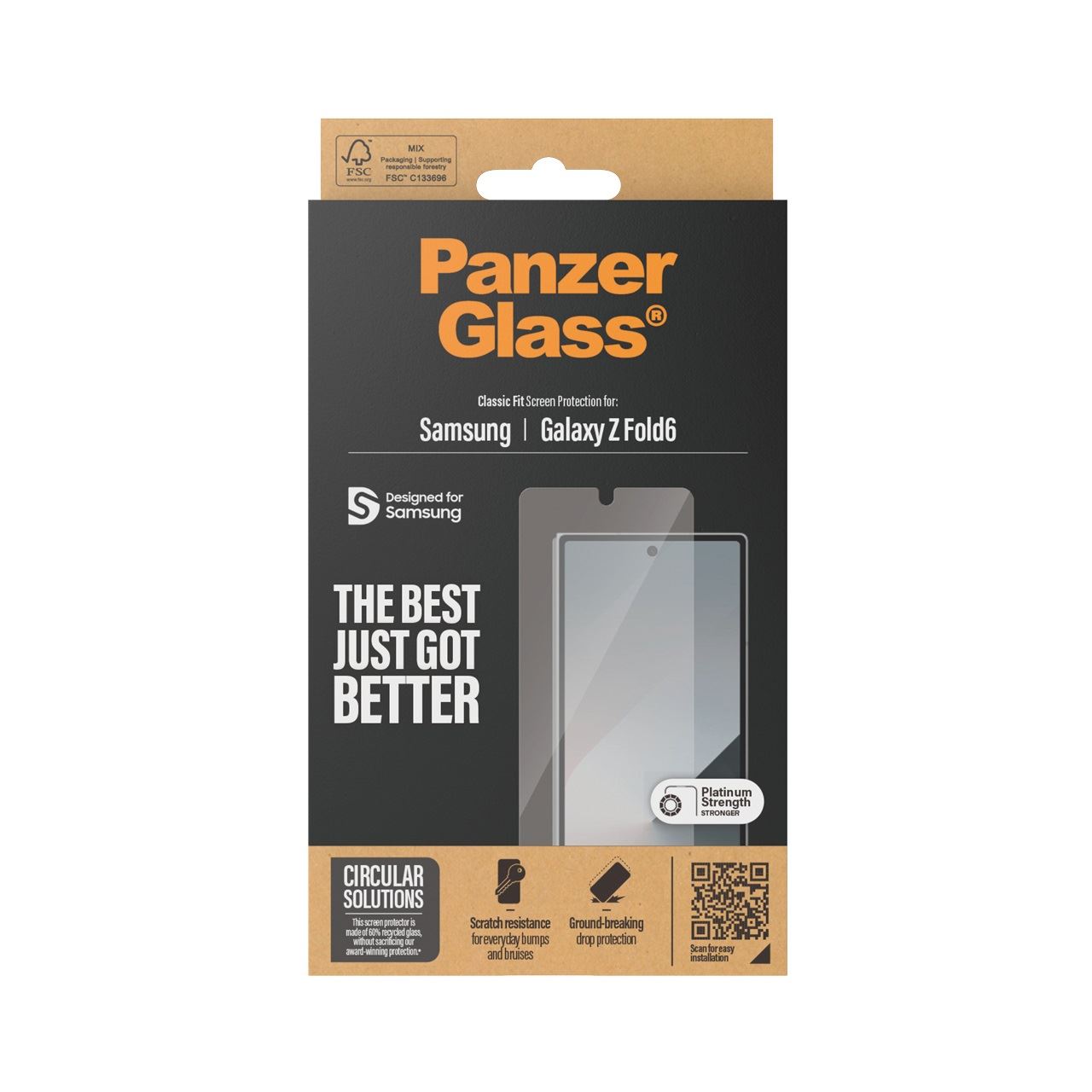 PanzerGlass ® Displayschutz Samsung Galaxy Z Fold6 | Classic Fit. Markenkompatibilität: Samsung, Kompatibilität: Samsung - Galaxy Z Fold6. Trockene Anwendung. Schutzfunktion: Kratzresistent, Schockresistent. Material: Gehärtetes Glas, Polyethylenterephthalat, Silikon, Produktfarbe: Transparent. Menge pro Packung: 1 Stück(e)