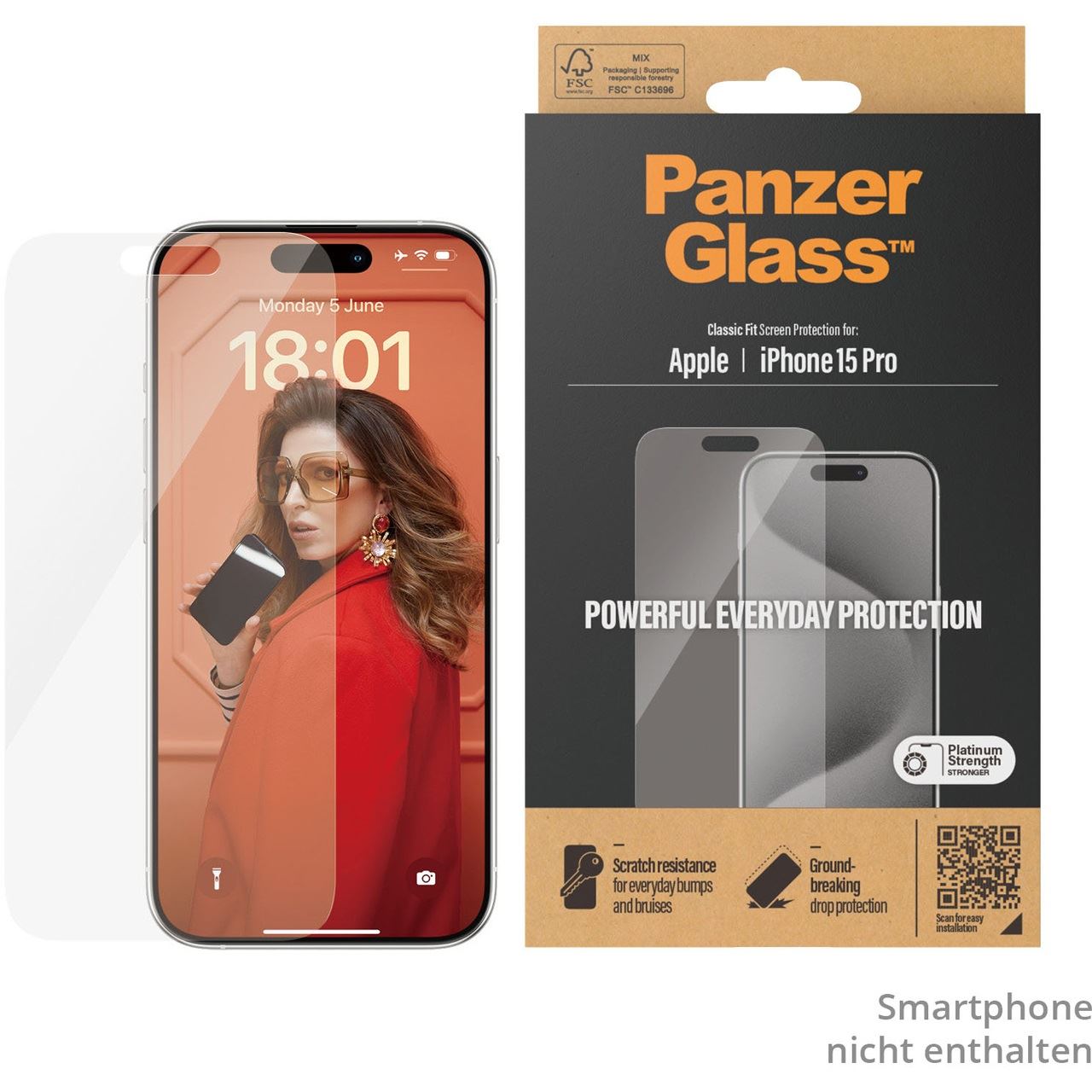 PanzerGlass ® Displayschutz iPhone 15 Pro | Classic Fit. Markenkompatibilität: Apple, Kompatibilität: Apple - iPhone 15 Pro. Trockene Anwendung. Schutzfunktion: Kratzresistent, Schockresistent. Material: Gehärtetes Glas, Polyethylenterephthalat, Silikon, Produktfarbe: Transparent. Menge pro Packung: 1 Stück(e)
