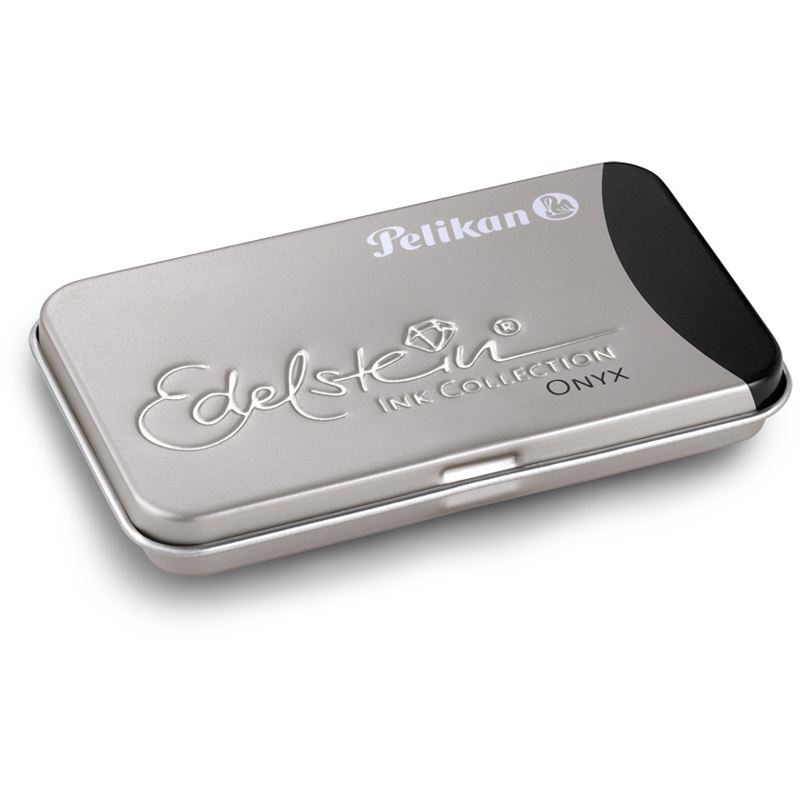 Die Tinte Edelstein Ink Onyx (entspricht Schwarz) gehört zur neuen Tintenkollektion in Edelsteinfarben von Pelikan. Ein spezieller Zusatz in der Tintenrezeptur sorgt für ein besonders weiches Schreiben und pflegt gleichzeitig den Füllhalter. Jede einzelne Tintenpatrone ist mit dem Schriftzug Edelstein Ink veredelt. 6 Großraumtintenpatronen befinden sich einem hochwertigen Metalletui. Das attraktive und stabile Metalletui im handlichen Format passt sogar in die Innentasche des Sakkos! Für ein einfaches und schnelles Nachbefüllen Ihres Pelikan Patronenfüllhalters. Qualität Made in Germany.