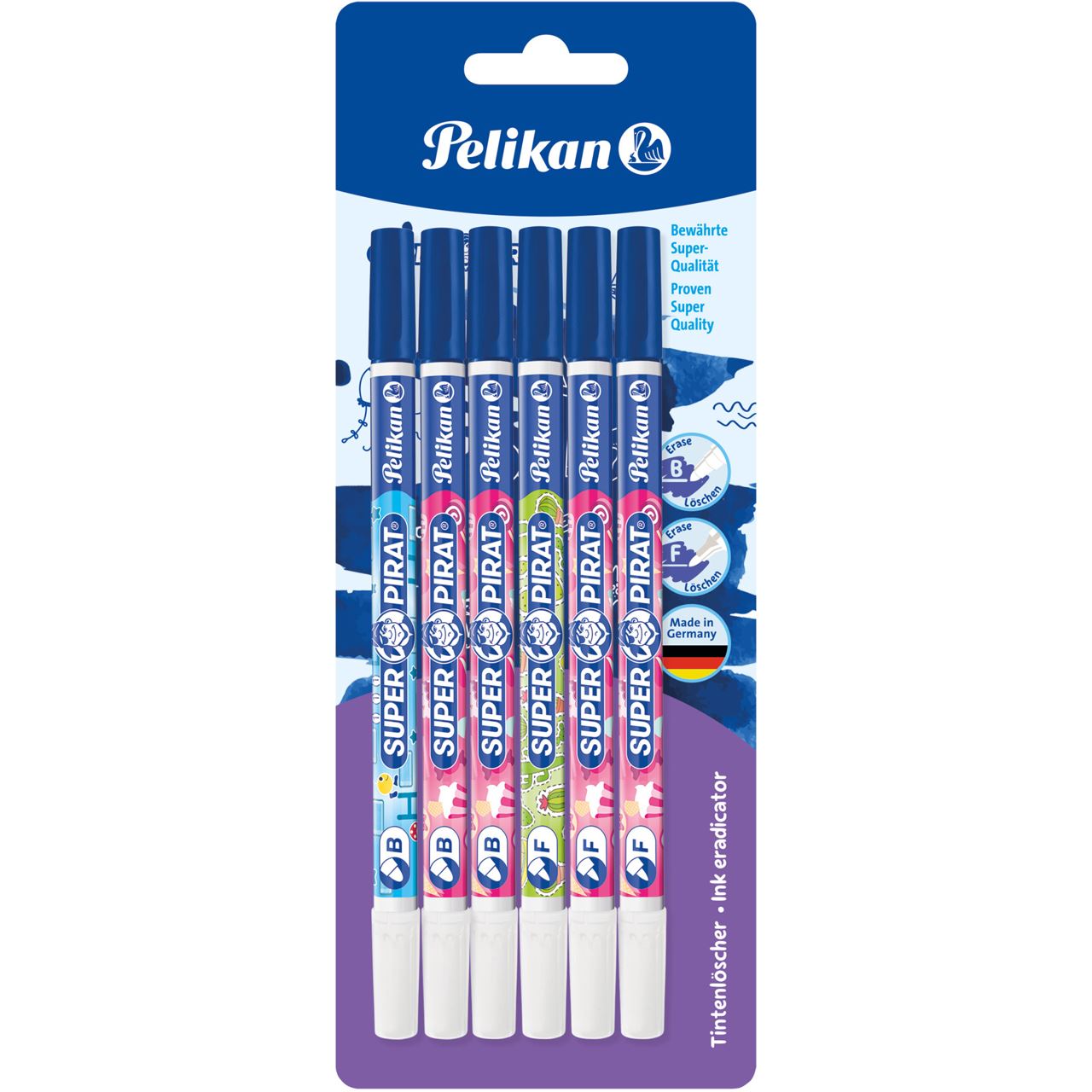 zwei Spitzen - löschen korrigieren, löscht königsblaue Tinte, Korrekturspitze zum Überschreiben beinhaltet: 6 Stück auf Blisterkarte (306696)