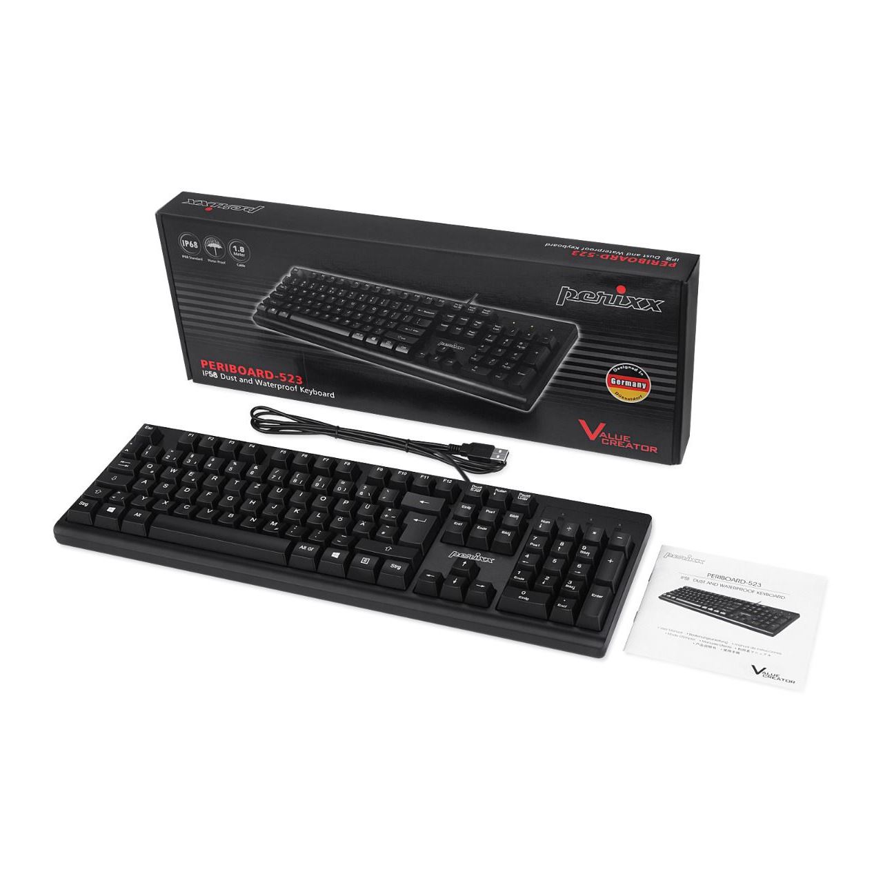Mit PERIBOARD-523, der neuesten TÜV zertifizierten staub- und wasserdichten Tastatur aus unserer professionellen Kollektion ist es möglich effizient und hygienisch zugleich zu arbeiten. Durch einen umfassenden Schutz vor Wasser und Staub, sowie eine einfache Reinigung ist PERIBOARD-523 ideal für industrielle und gewerbliche Umgebungen wie Krankenhäuser, medizinische Umgebungen, Labore, Büros und Restaurants. Machen Sie sich keine Sorgen mehr über Bakterien und den Zeitverlust, der durch das Reinigen der verschütteten Getränke auf der Tastatur entsteht.1,8 m haltbares KabelPlug-and-PlayNur mit der Hand reinigen. Keine Spülmaschine oder Reinigungsmittel benutzen.Tauchen Sie den USB-Stecker nicht ins Wasser ein.Verwenden Sie keinen Fön, um die Tastatur zu trocknen.Es wird dringend empfohlen, die Tastatur in einem gut belüfteten Raum für mehr als 12 Stunden zu trocknen