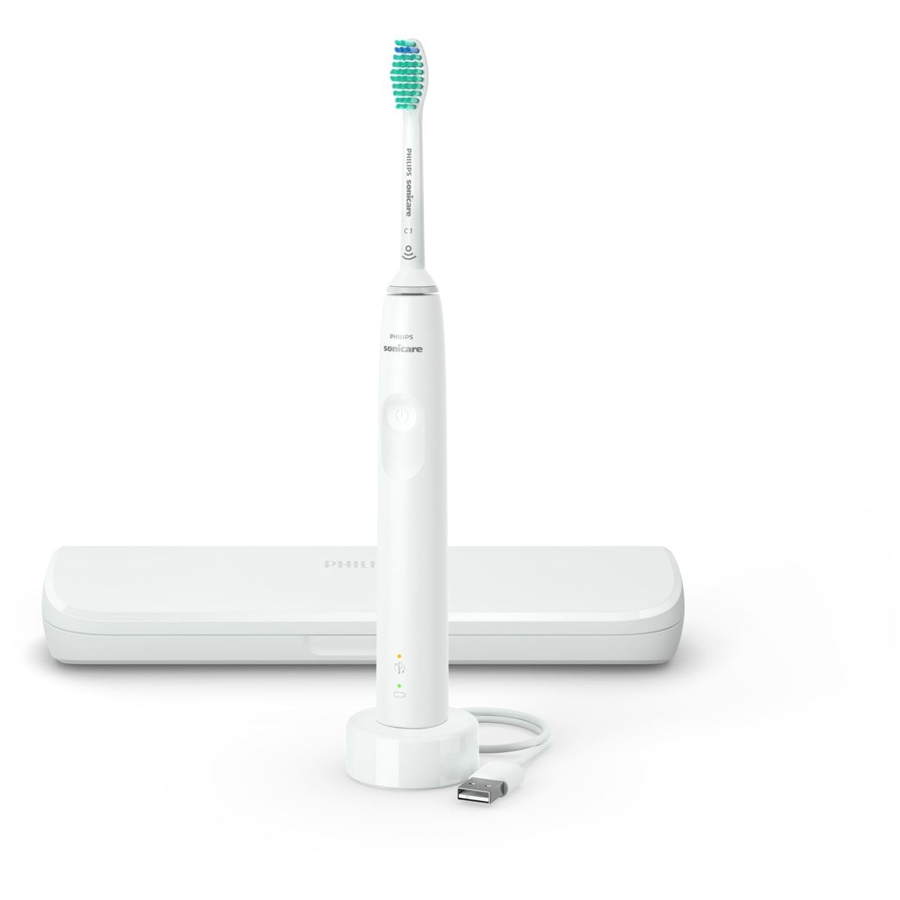Philips Sonicare 3100 series 3100 series HX3673/13 Elektrische Schallzahnbürste + Reiseetui - Weiß. Zweck: Erwachsener, Zahnbürstentyp: Schallzahnbürste, Zahnbürsten Modi: Tägliche Pflege. Energiequelle: Akku, Akku-/Batterietyp: Integrierte Batterie, Akku-/Batterietechnologie: Lithium-Ion (Li-Ion). Anzahl enthaltener Griffe: 1 Stück(e), Anzahl enthaltener Bürstenköpfe: 1 Stück(e)