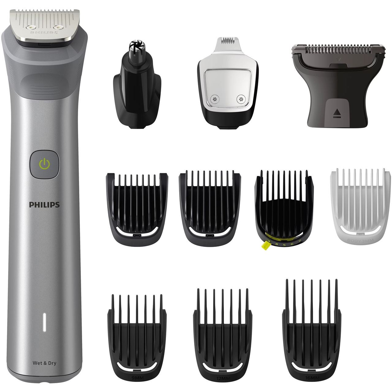 Philips All-in-One Trimmer MG5940/15 5000er Serie. Produktfarbe: Edelstahl, Minimum Haarlänge: 0,5 mm, Maximum Haarlänge: 1,6 cm. Energiequelle: Akku, Betriebsdauer: 120 min, Akku-/Batterietyp: Integrierte Batterie