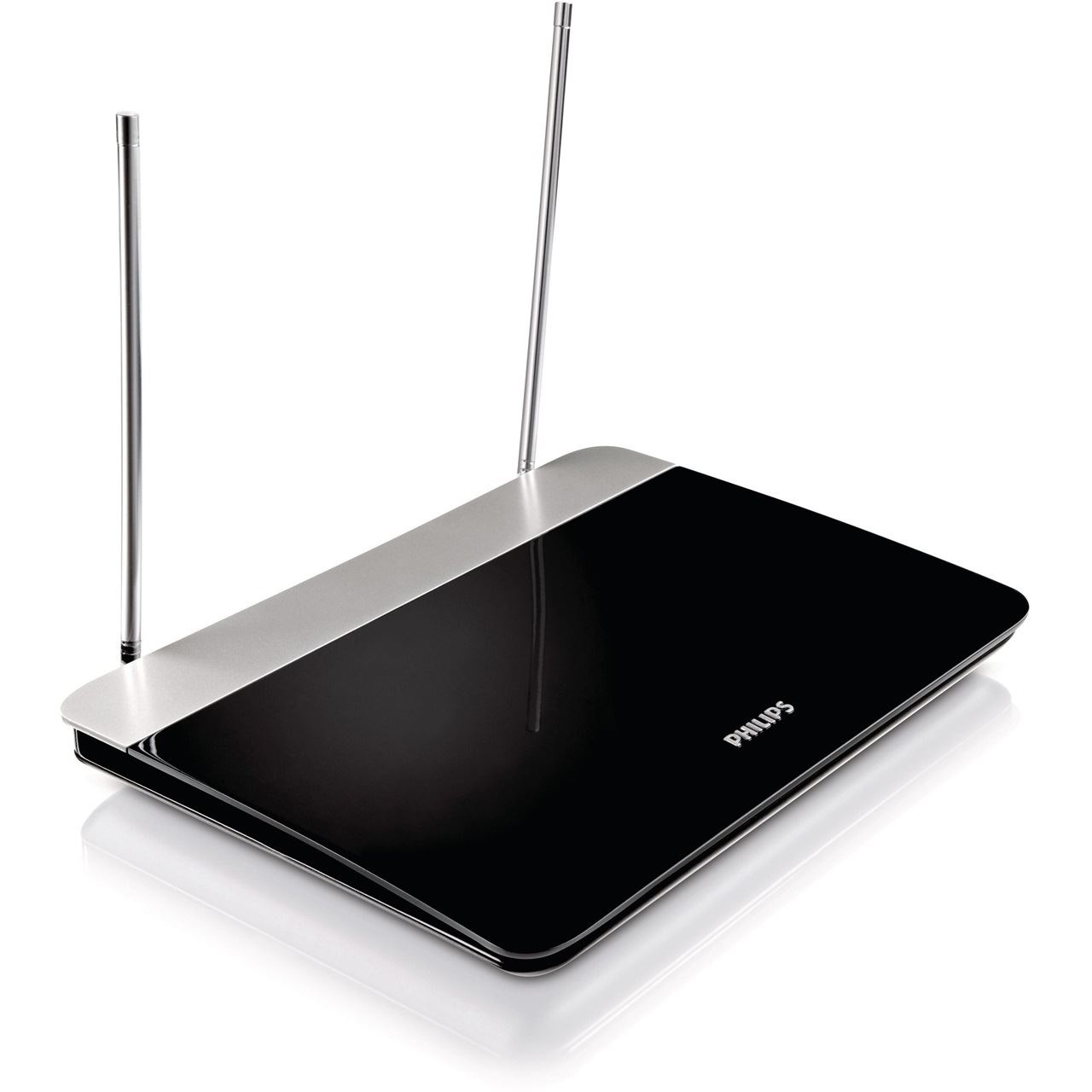 Philips Digital-TV-Antenne SDV6227/12. Produktfarbe: Schwarz, Silber, Antennentyp: Dual, Kabellänge der Antenne: 1,8 m. Breite: 250 mm, Tiefe: 2,72 mm, Höhe: 19,1 mm. Menge pro Packung: 1 Stück(e), Verpackungsabmessungen (BxTxH): 24,5 x 5,7 x 31 mm, Verpackungsgewicht: 0,866 kg. Bruttogewicht äußerer Karton: 3,802 kg, Nettogewicht äußerer Karton: 2,524 kg, Nettogewicht Verpackung: 0,631 kg