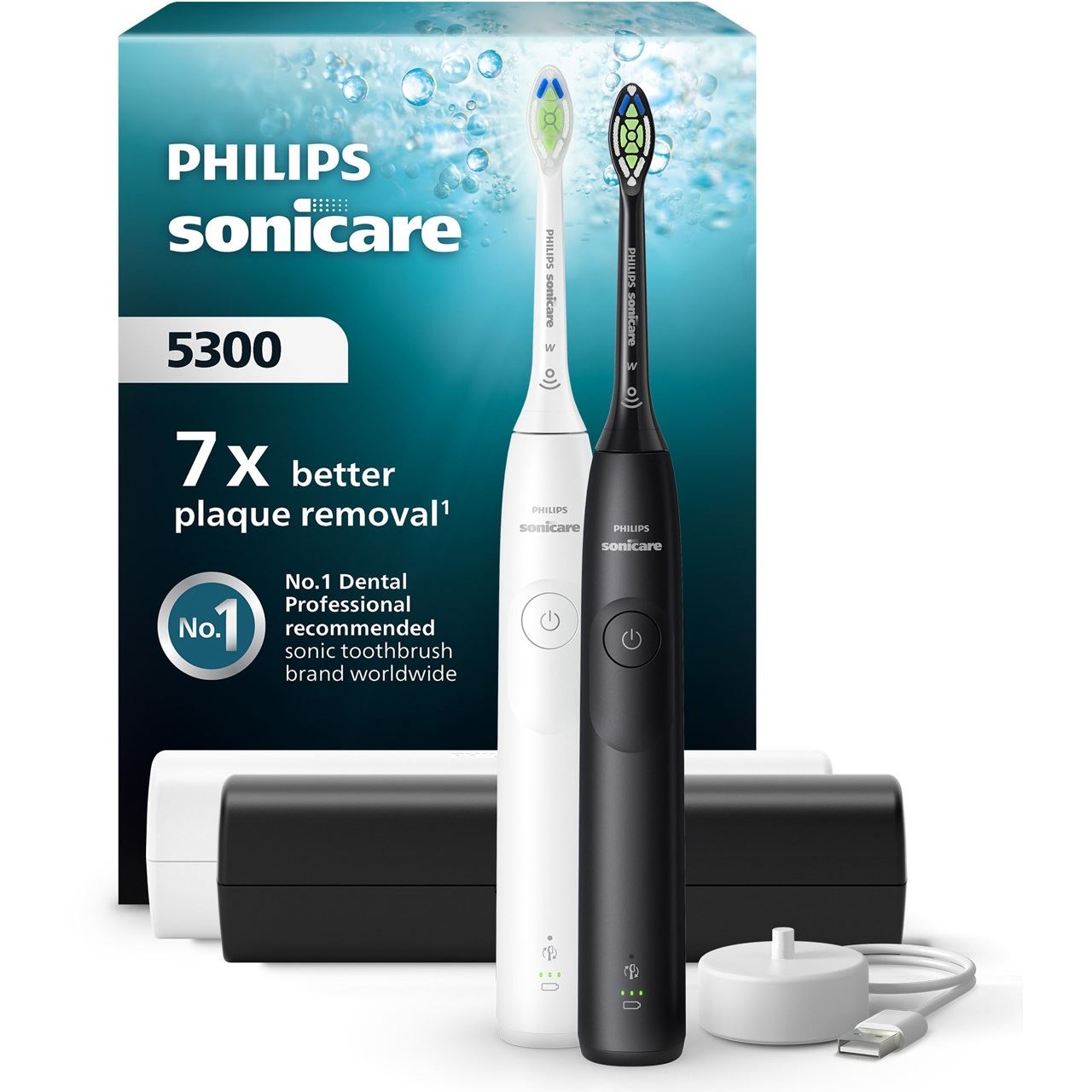 Philips Sonicare 5300 series Series 5300 HX7109/01 Wiederaufladbare Zahnbürste. Zweck: Erwachsener, Zahnbürstentyp: Schallzahnbürste, Zahnbürsten Modi: Tägliche Pflege. Energiequelle: Akku, Akku-/Batterietyp: Integrierte Batterie, Akku-/Batterietechnologie: Lithium-Ion (Li-Ion). Anzahl enthaltener Griffe: 2 Stück(e), Anzahl enthaltener Bürstenköpfe: 2 Stück(e)