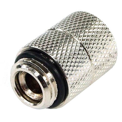 Die Verlängerung von G1/4" Außengewinde auf G1/4" Innengewinde dient zum Verlängern des Gewindeanschlusses und ermöglicht es somit, gewinkelte Anschlüsse universeller einzusetzen. Der Schlauch kann so in dieselbe Richtung geführt werden, da die Winkelanschlüsse nun übereinander liegen. Technische Details: Farbe: silber vernickelt Gewinde: 1/4" außen auf 1/4" innen Gewindelänge: 4mm Länge: 20mm Lieferumfang: 1x Phobya Verlängerung G1/4 auf G1/4 drehbar - silber vernickelt