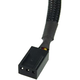 Zum Anschluss von vier 3-pin Lüfter (Radiatorlüfter, Gehäuselüfter usw.) an Mainboardanschluss (3-pin). Bitte beachten Sie, die Drehzahlüberwachung wird bei der Verwendung des Kabels nur bei einem der angeschlossenen Lüfter möglich. Ein weißer Sticker am Kabel zeigt an, welches das Tachosignal überträgt. Sleeving: Dieses Kabel ist nicht nur Zweckmäßig, sondern auch noch optisch sehr ansprechend. Das umspannende Netz, was die eigentlichen Kabel umwickelt, ist sehr dicht und bietet genau den Effekt den die Profisleever wollen: Kompletter Umbau der Kabel, um eine Einzigartigkeit seines Systems noch besser zu betonen! Besonderes Augenmerk wurde auf die Kombination von der Kabelummantelung (dem Sleeve), des Steckers und der Schrumpfschläuche geachtet, dass sie ein einheitliches Bild ergeben. Sets: Phobyas Ziel ist es, den Hobby und Profi Casemoddern hier ein Stück weit entgegen zu kommen. Sleeving ist viel Arbeit und kostet viel Zeit, daher kann man sich nun mit den Kabeln von Phobya sein komplettes System so umbauen wie man es gerne möchte, nur durch einfaches Kabelwechseln. Technische Details: Anschlüsse: 3 Pin auf 4x 3 Pol Y-Kabel Farbe: schwarzer Sleeve, schwarze Stecker, schwarzer Schrumpfschlauch Abmessungen: je 30cm RoHS konform Lieferumfang: 1x Phobya Y-Kabel 3Pin Molex auf 4x 3Pin Molex 60cm - Schwarz Hinweis: Beim Verwenden dieses Verteilers bitte die Anforderungen des Steckplatzes, am Mainboard oder der Lüftersteuerung, beachten. Zu hohe Belastungen, Wattzahl der Lüfter beachten, kann zu Schäden führen. Dieses Produkt wurde für Sie getestet: Aquainfos Tech-Review