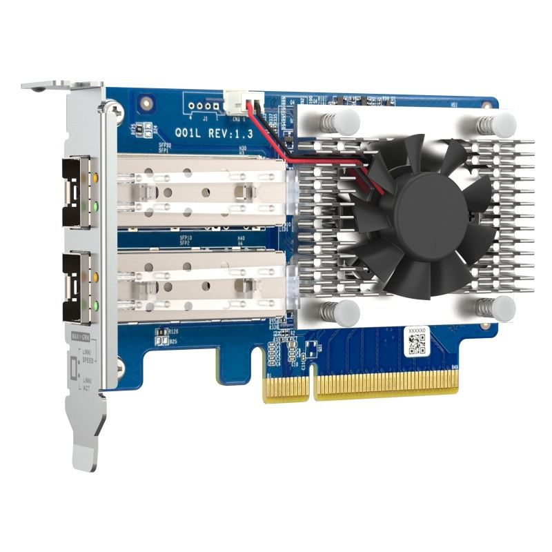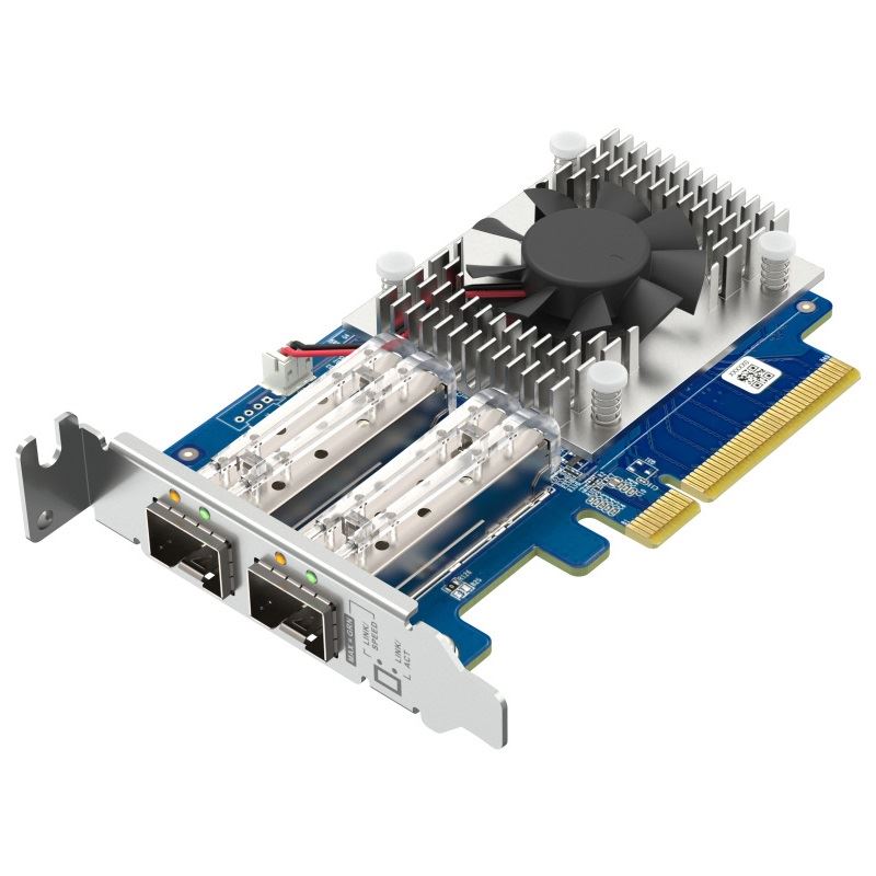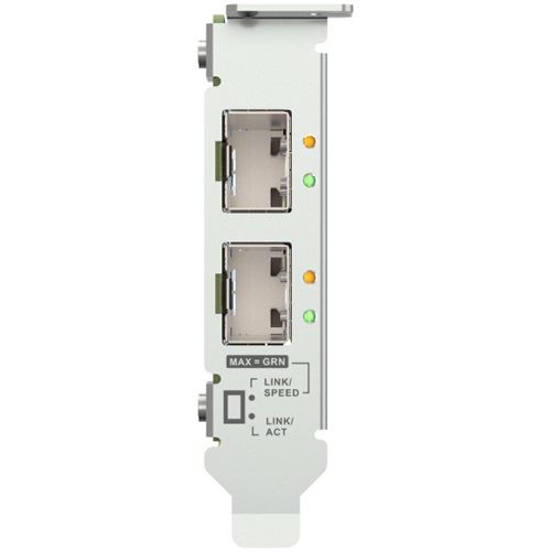 Die QXG-10G2SF-NXE 10 GbE Netzerweiterungskarte mit zwei 10 GbE SFP+ Ports (10G/1G) ist energieeffizient und kostengünstig. Sie ist die ideale Lösung für Teams, die einen gleichzeitigen Datenzugriff benötigen, für Fotografen/Videografen, die schnelle und nahtlose Datenübertragungsfunktionen suchen, oder für latenzempfindliche Virtualisierungsanwendungen .