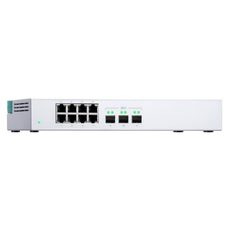 Der QSW-308S verfügt über drei 10GbE-SFP+-Ports und acht Gigabit-Ports für den Anschluss verschiedener Geräte und ermöglicht ein hybrides High-Speed-Netzwerk zu Hause und im Büro. Mit SFP+-Schnittstellen können Direct Attach Copper (DAC) Kabel für den direkten Anschluss an SFP+-Geräte verwendet werden. Sie können auch 10G-SFP-T-Kupfer-Transceiver-Module verwenden, um 10GBASE-T / NBASE-T ™ -Geräte über RJ45-Kabel der Kategorie 6, 5 oder 5e anzuschließen. Die Switching-Kapazität von QSW-308S beträgt 76 Gbit / s, wodurch das volle Potential jedes Ports bedeutet wird.