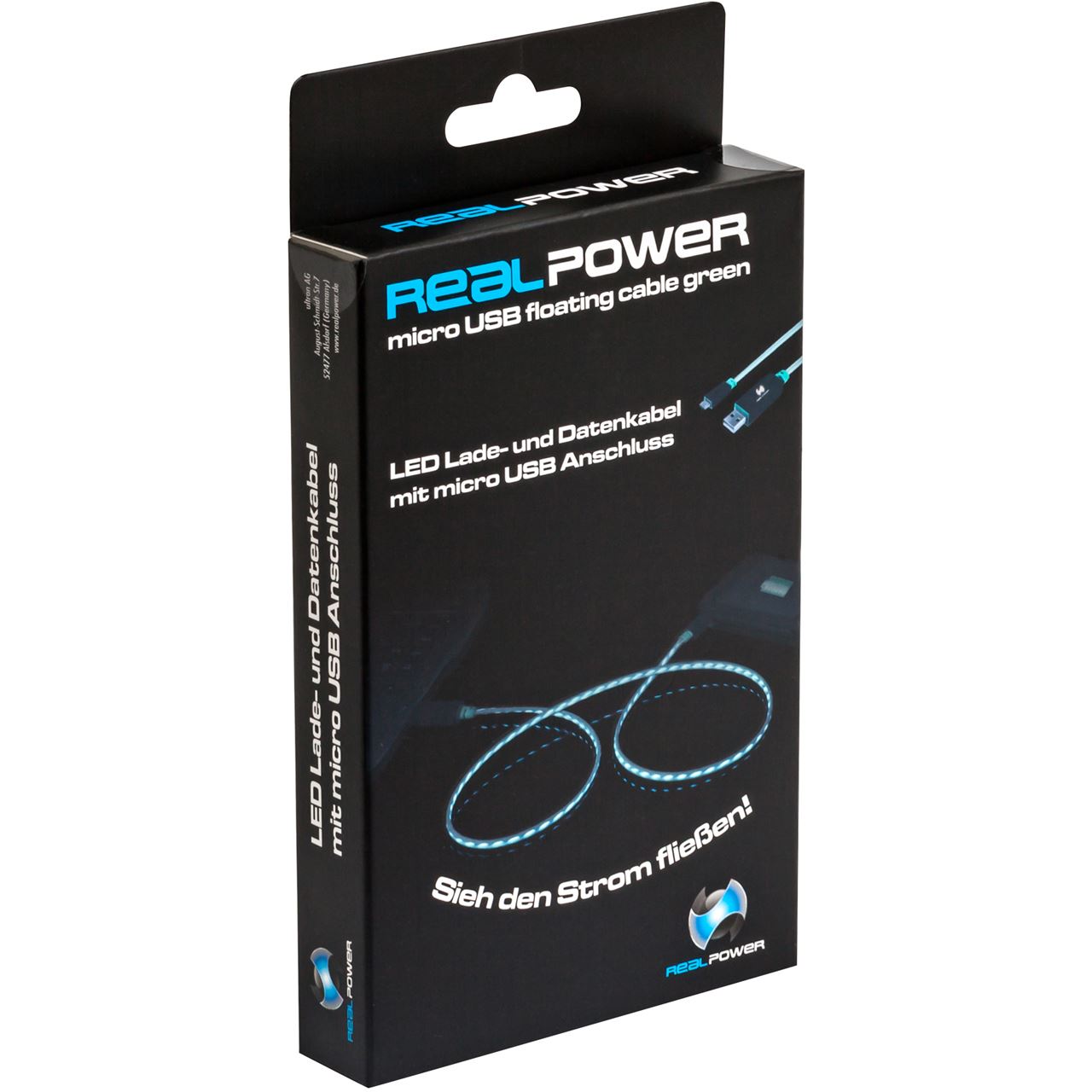 RealPower USB A/Micro-USB B 0.75m. Kabellänge: 0,75 m. Anschluss 1: USB A, Anschluss 2: Micro-USB B, USB-Version: USB 2.0, Steckerverbindergeschlecht: Männlich/Männlich, Produktfarbe: Schwarz, Grün
