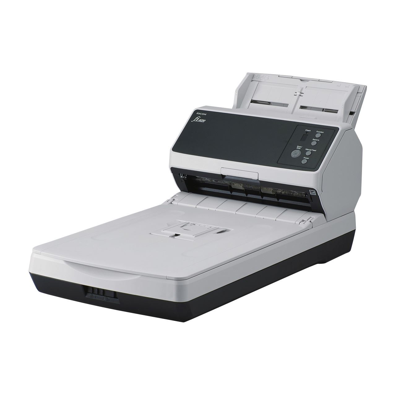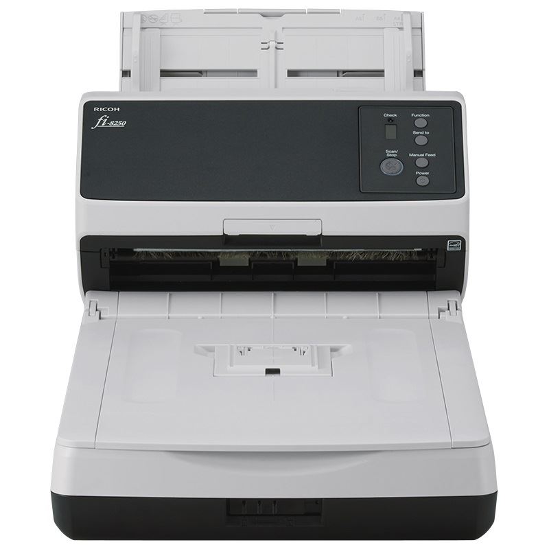 Ricoh fi-8250. Maximale Scan-Abmessung: 216 x 355,6 mm, Optische Scan-Auflösung: 600 x 600 DPI, ADF-Scangeschwindigkeit (s/w, A4): 50 Seiten pro Minute. Scanner-Typ: ADF + Scanner mit manueller Zuführung, Produktfarbe: Schwarz, Grau, Steuerung: Tasten. Sensor-Typ: Dual CIS/CCD, Lichtquelle: LED, Scanner-Dateiformate: JPEG, PDF, PNG, TIFF. Kapazität des automatischen Dokumenteneinzugs (ADF): 100 Blätter. Maximale Papiergröße der ISO A-Serie: A4, Unterstützte Scan-Medientypen: Visitenkarte, Post Card(JPN), ISO-A-Formate (A0...A9): A4, A5, A6
