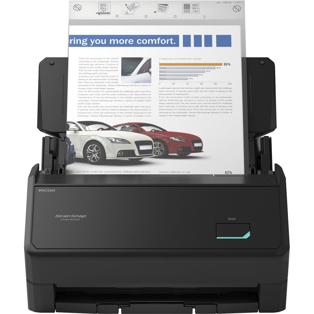 Mit sofortigem, intuitivem One-Touch-Scannen, schneller Digitalisierung (die Ihnen Zeit und Aufwand spart) und marktführender Zuverlässigkeit bietet der iX2400 ein einfaches Nutzungserlebnis, mit dem Sie Ihre Dokumente mühelos und sofort in die digitalen Dateien umwandeln können , die Sie benötigen. Dank Ein-Knopf-Bedienung und Quick-Menü können Sie direkt in Ihre bevorzugten Anwendungen scannen. Mit einer beeindruckenden Scangeschwindigkeit von 45 Seiten pro Minute und einer Einzugskapazität von 100 Blatt ist der iX2400 bestens ausgestattet..