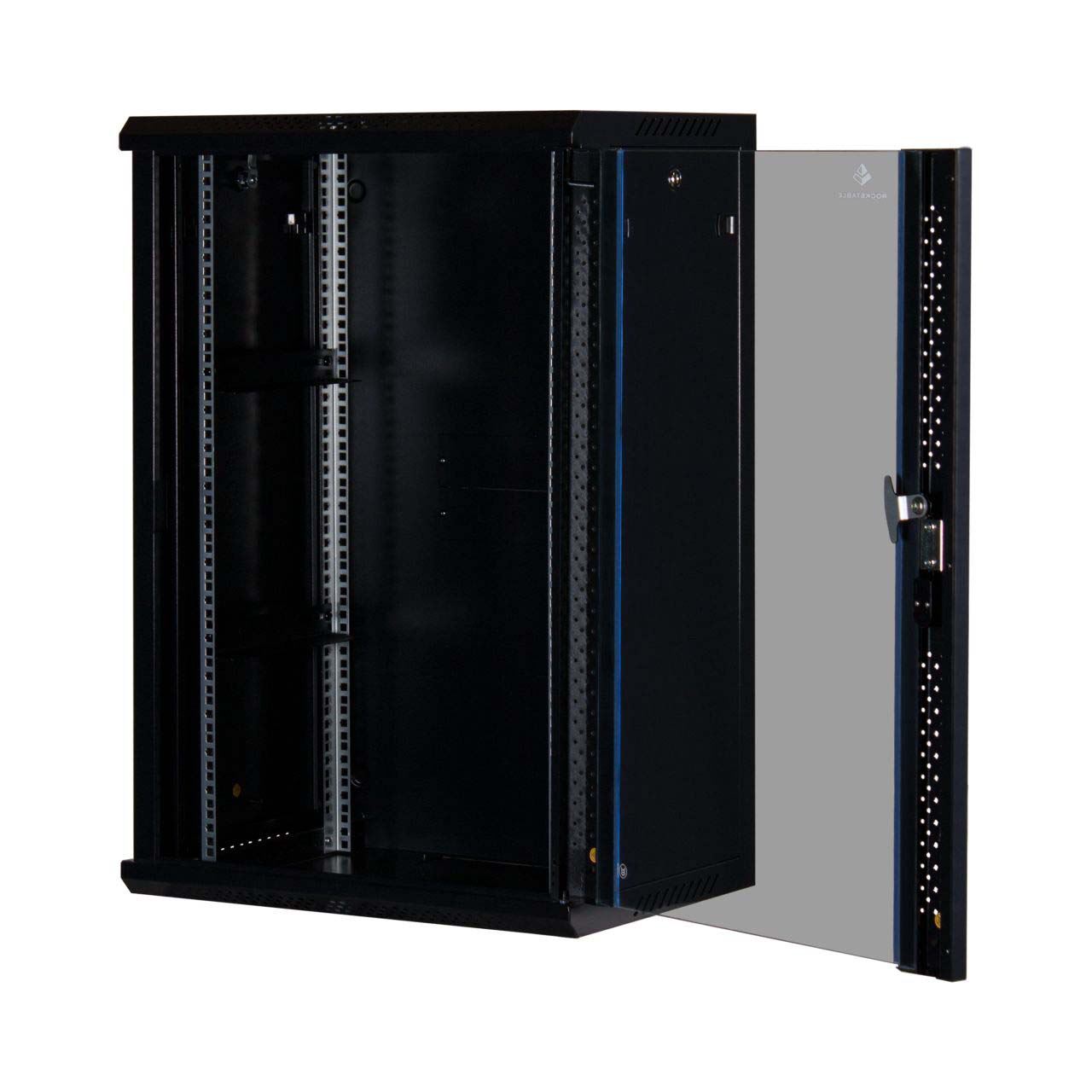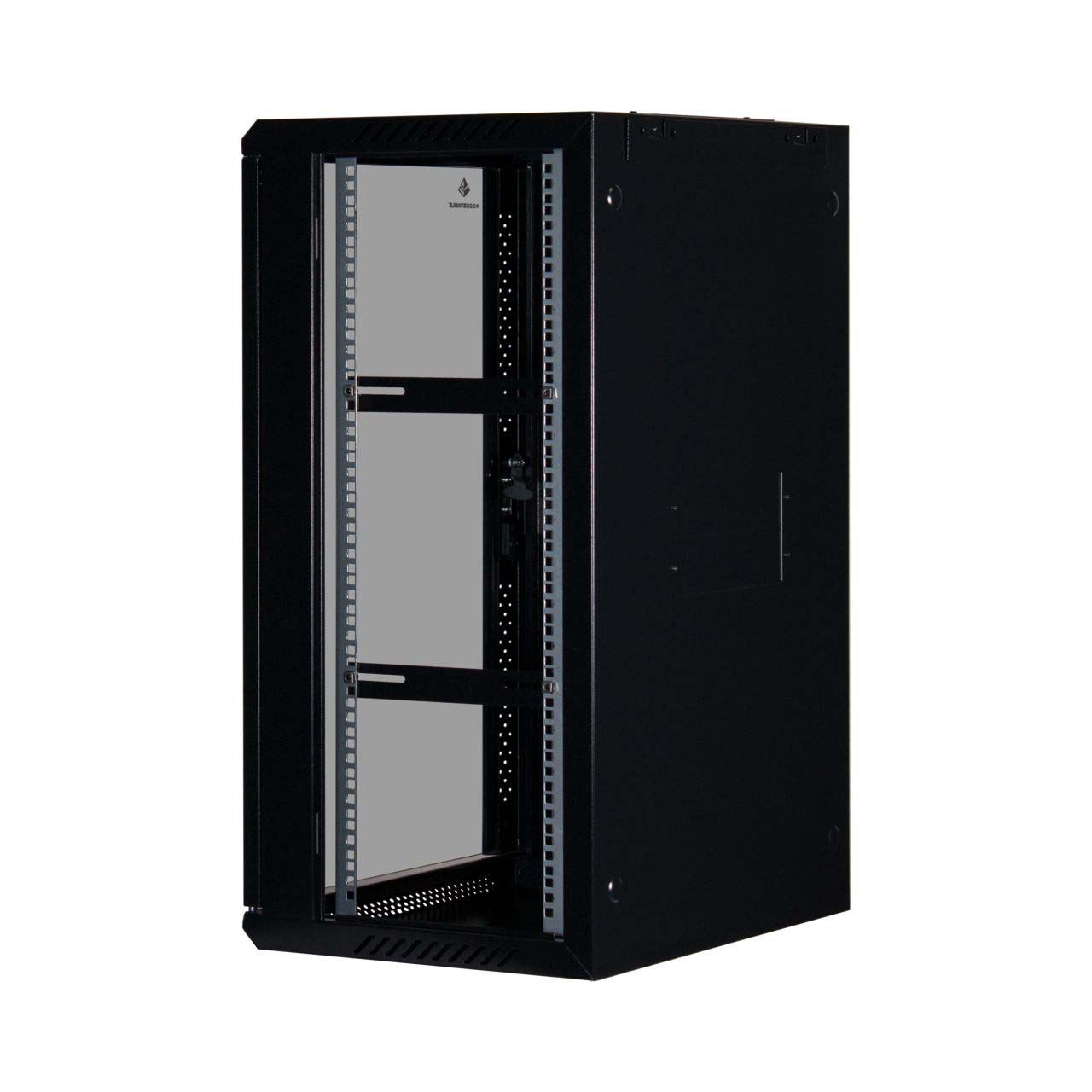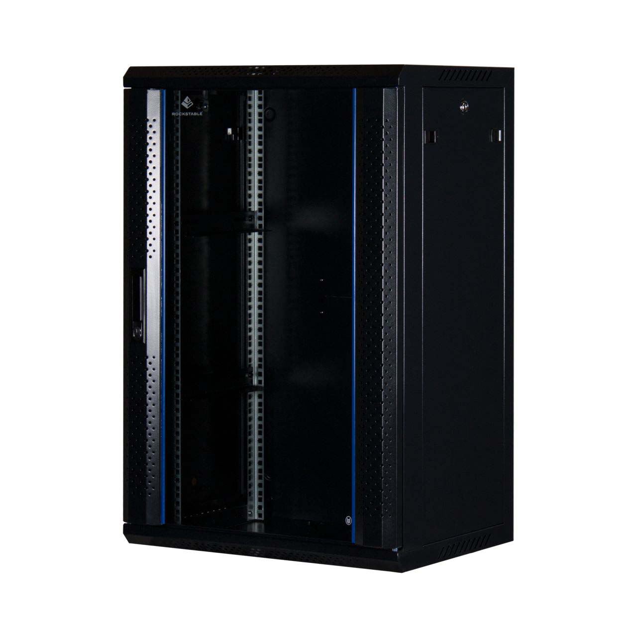 Rockstable 18 HE 19" Wandschrank mit Glastür. Typ: Wandmontiertes Regal, Rack-Kapazität: 18U, Höchstgewichtskapazität: 60 kg, Sperrschloss, Internationale Schutzart (IP-Code): IP20, Produktfarbe: Schwarz