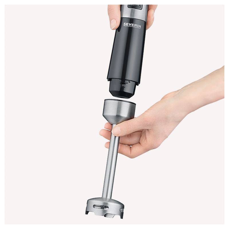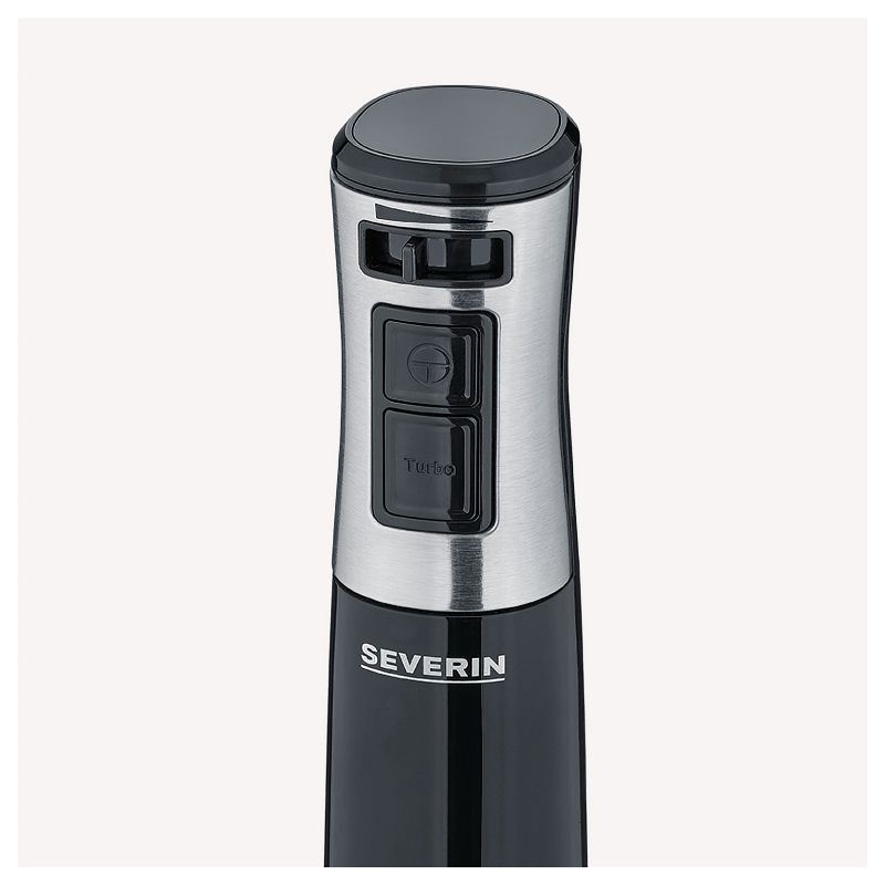Severin SM 3771. Typ: Pürierstab, Produktfarbe: Schwarz, Edelstahl. Rotationsgeschwindigkeit (min.): 15 RPM, Rotationsgeschwindigkeit (max.): 15000 RPM, Geschwindigkeitskontrollart: Stufenlos. Gehäusematerial: Edelstahl. Leistung: 600 W, Energiequelle: AC. Breite: 60 mm, Tiefe: 60 mm, Höhe: 390 mm