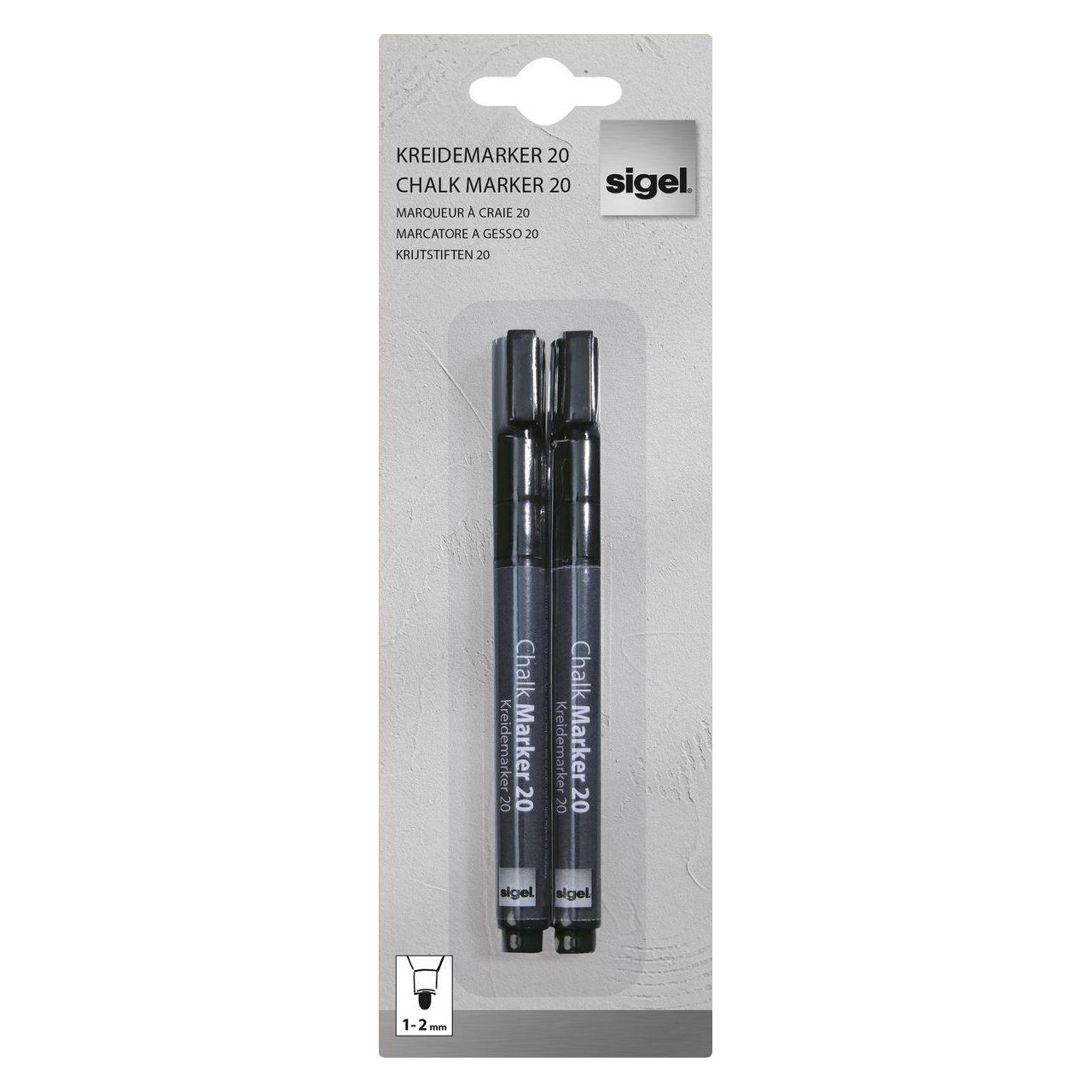 SIGEL 20 Kreidemarker schwarz 1,0 - 2,0 mm, 2 St.