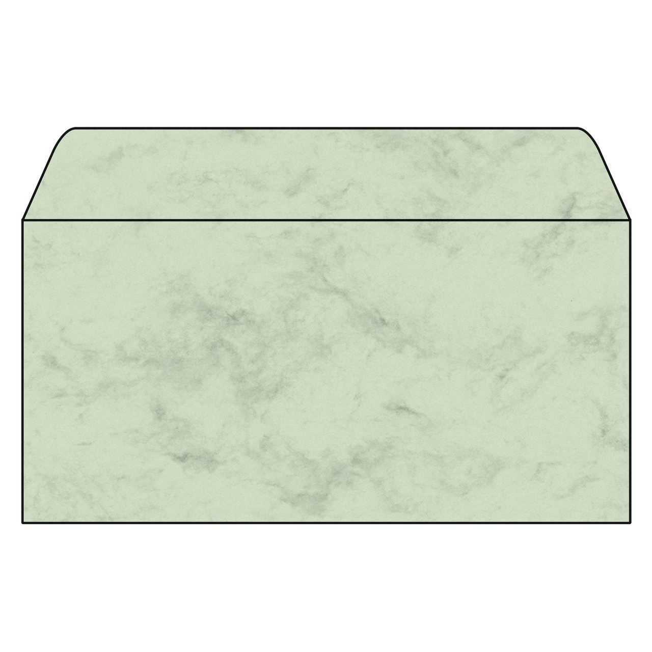 Umschlag Marmor pastellgrün mit Innendruck, passend zu Marmor-Papieren. Die gummierten Umschläge ohne Fenster sind für die Beschriftung mit Inkjet- und Laser-Drucker sowie Kopierer geeignet. Im Lieferumfang sind 50 Stück im Format DIN lang enthalten.