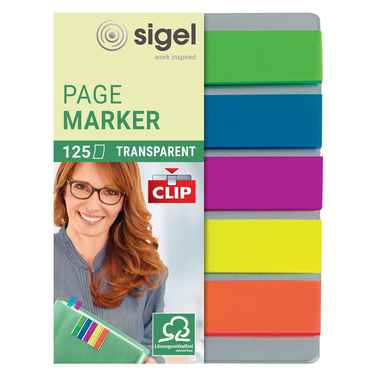 SIGEL Haftmarker transparent mit Clip Haftmarker farbsortiert 5x 25 Streifen