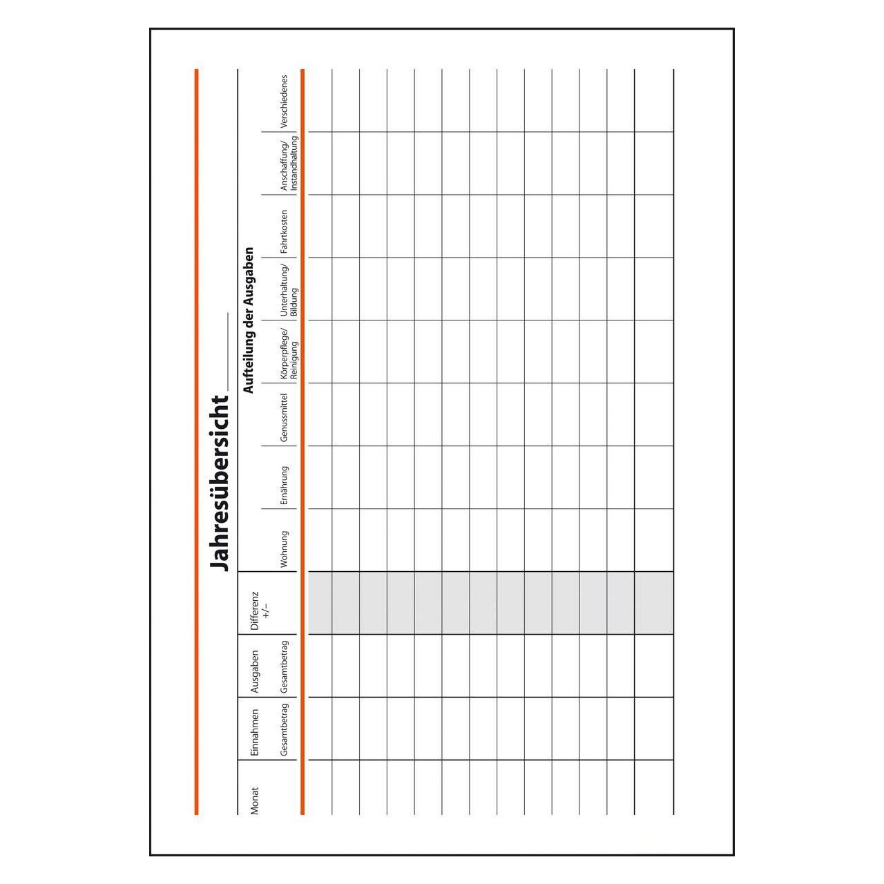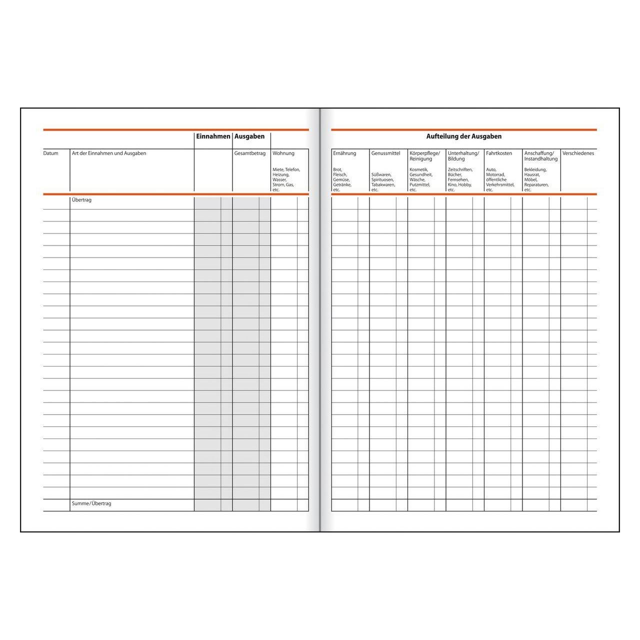 Haushaltsbuch im Format DIN A5 mit 40 Blatt, FSC® zertifiziert. Übersichtliche Gestaltung durch praktische Einteilung der Einnahmen und Ausgaben. Die Spalteneinteilung in verschiedene Kostenarten über jeweils zwei Seiten ermöglicht einen schnellen Überblick über die wöchentlichen und monatlichen Ausgaben, die Jahresübersichtstabelle bietet zusätzliche einen kompletten Überblick über die Finanzen.