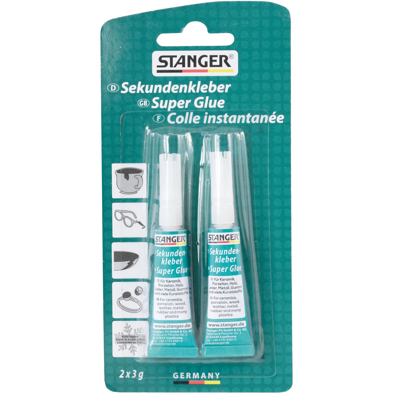 Stanger 18041. Substanz: Flüssigkeit, Klebertyp: Klebstofftube, Volumen (g): 3 g. Menge pro Packung: 12 Stück(e). Verpackungsart: Sichtverpackung