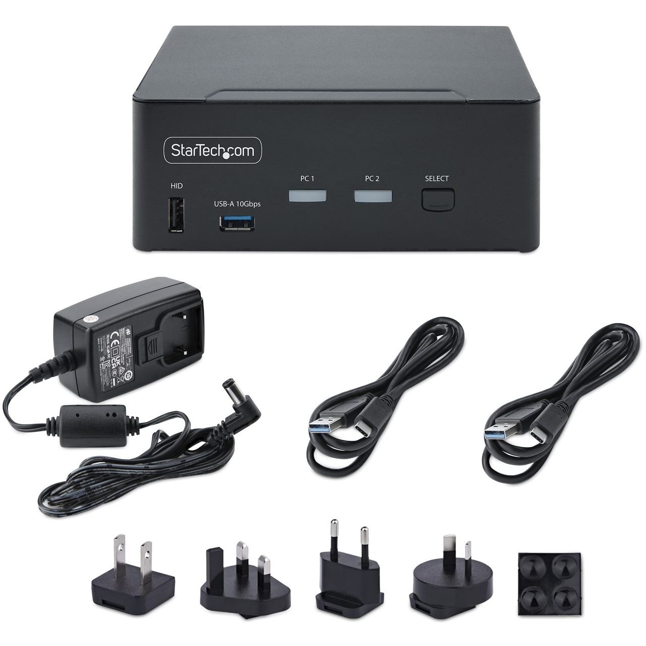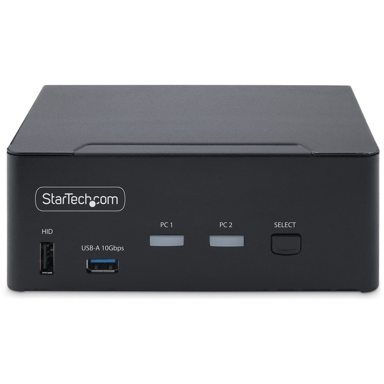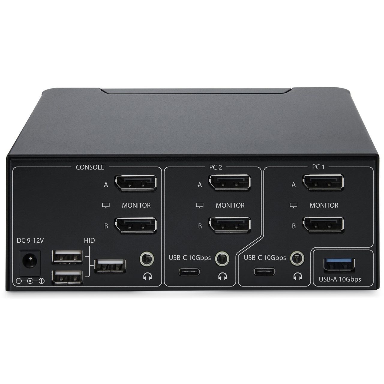 Dieser KVM-Umschalter für zwei Monitore ermöglicht es Benutzern, zwischen zwei USB- und DisplayPort-fähigen Desktops umzuschalten. Er ermöglicht die gemeinsame Nutzung von zwei 8K 60Hz DisplayPort-Monitoren, einer Tastatur und Maus sowie zwei USB 10Gbps-Geräten.