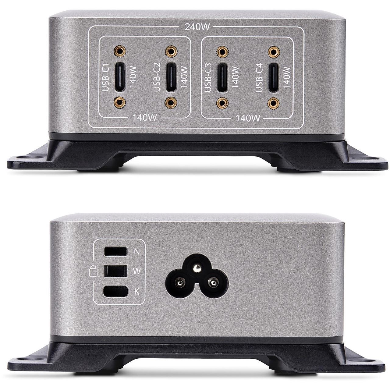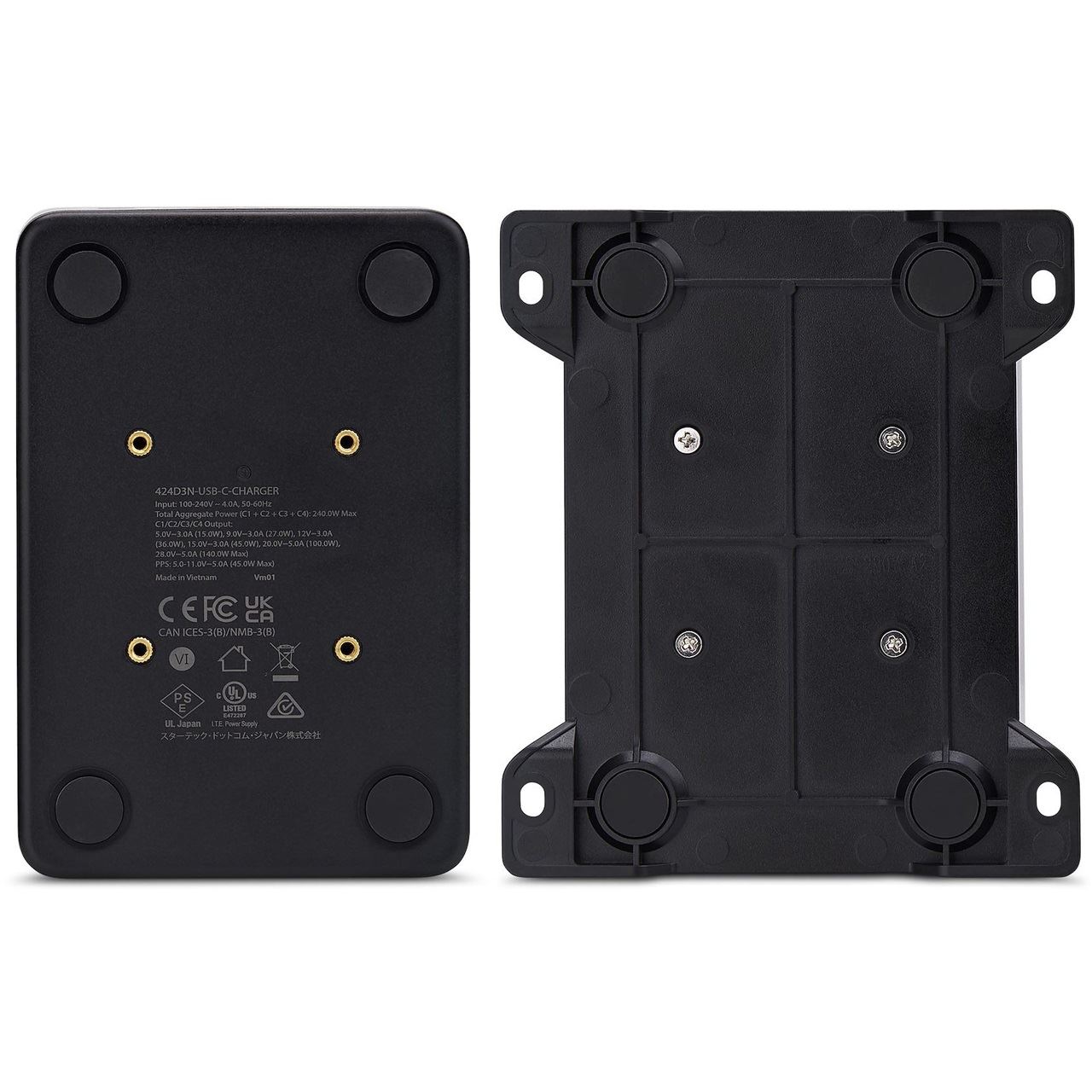 StarTech.com 424DUK-USB-C-CHARGER. Aufladetyp: Drinnen, Energiequelle: AC, Aufladekompatibilität: Universal. Eingangsspannung: 100 - 240 V, Maximale Ausgangsspannung: 28 V. USB Typ-C Anzahl Anschlüsse: 4, Schnellladung, Energieschutzeigenschaften: Überhitzung, Überstrom, Überspannung. Kabellänge: 1,8 m, Produktfarbe: Grau