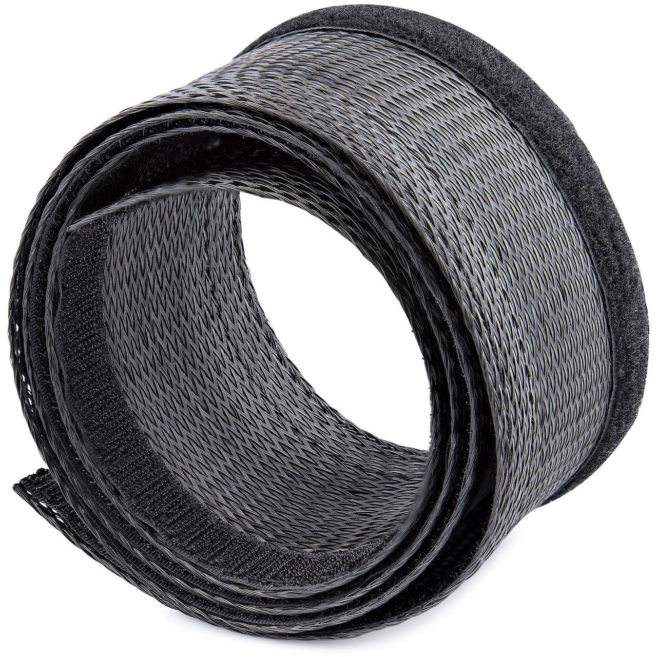 Klettverschlüsse ermöglichen einen schnellen und bequemen Zugang zu Kabelbündeln. Die Hülse lässt sich bei Bedarf erweitern, um zusätzliche Kabel unterzubringen. Es werden keine Werkzeuge benötigt und die Kabel können verbunden bleiben, wenn sie in die Kabelmanagement-Tülle eingeführt werden.