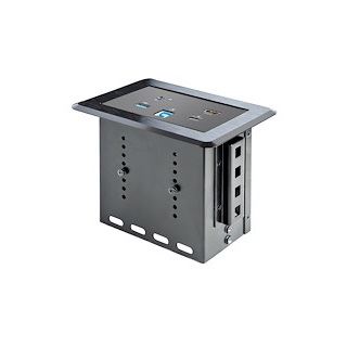 Schaffen Sie eine praktische und stilvolle Lösung, die Ihre Besucher beeindruckt und ihre Bedürfnisse erfüllt. Dieses Tischanschlussfeld lässt sich einfach in einen Konferenztisch, einen Schreibtisch oder ein Rednerpult einbauen und verfügt über eine schwarze Aluminiumoberfläche, die perfekt zu Ihrem Tisch und Ihren Peripheriegeräten passt.