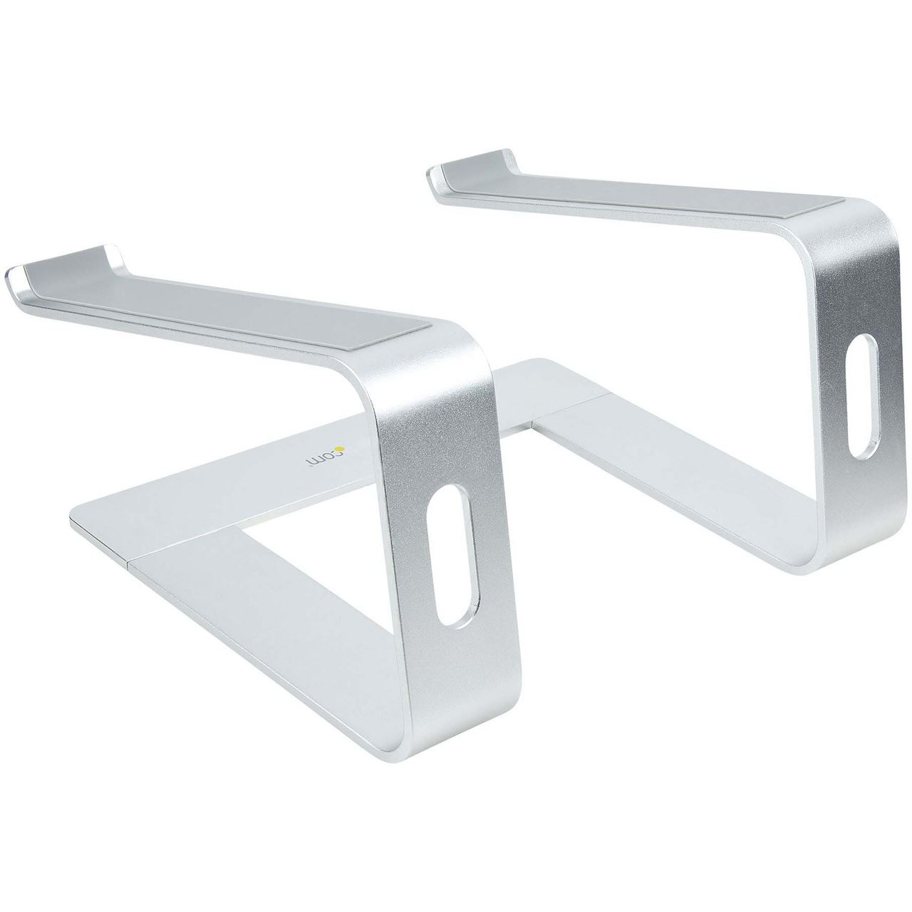 Der ergonomische Laptophalter ist mit 16 Grad leicht nach unten geneigt und bietet so einen bequemen Betrachtungswinkel. Die angehobene Lippe auf der Vorderseite der Trägerarme verhindert mit Hilfe der Gummipads das Abrutschen des Laptops.