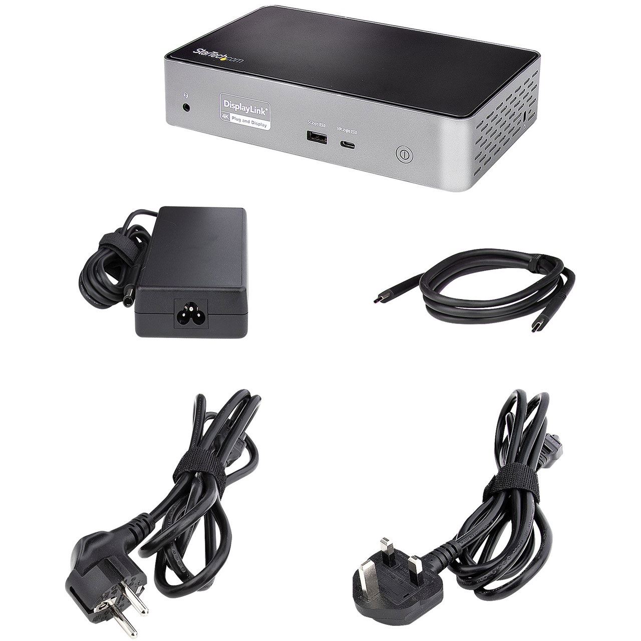 StarTech.com USB C Dockingstation für 4 monitore - 4K 60Hz Hybrid Notebook Dock DisplayPort 1.4 & HDMI 2.0 - Universal USB-C/Thunderbolt Laptop Dock mit 100W PD - USB Hub mit 1x USB-C & 3x USB-A, GbE, Audio. Übertragungstechnik: Kabelgebunden, Hostschnittstelle: USB 3.2 Gen 2 (3.1 Gen 2) Type-C, USB-Stromversorgung bis zu: 100 W. Produktfarbe: Schwarz, Grau, Datenübertragungsrate: 10 Gbit/s, Auflösung (maximal, digital): 5120 x 2880 Pixel. AC Eingangsspannung: 100 - 240 V, Ausgangsspannung: 20 V, Ausgangsstrom: 8,5 A. Unterstützt Windows-Betriebssysteme: Windows 10 Education x64, Windows 10 Enterprise x64, Windows 10 Home x64, Windows 10 Pro x64,..., Unterstützt Mac-Betriebssysteme: Mac OS X 10.14 Mojave, Mac OS X 10.15 Catalina, Mac OS X 10.15.3 Catalina, Mac OS X 11.0 Big Sur,..., Unterstützung anderer Betriebsysteme: ChromeOS. Breite: 90 mm, Tiefe: 215 mm, Höhe: 46 mm