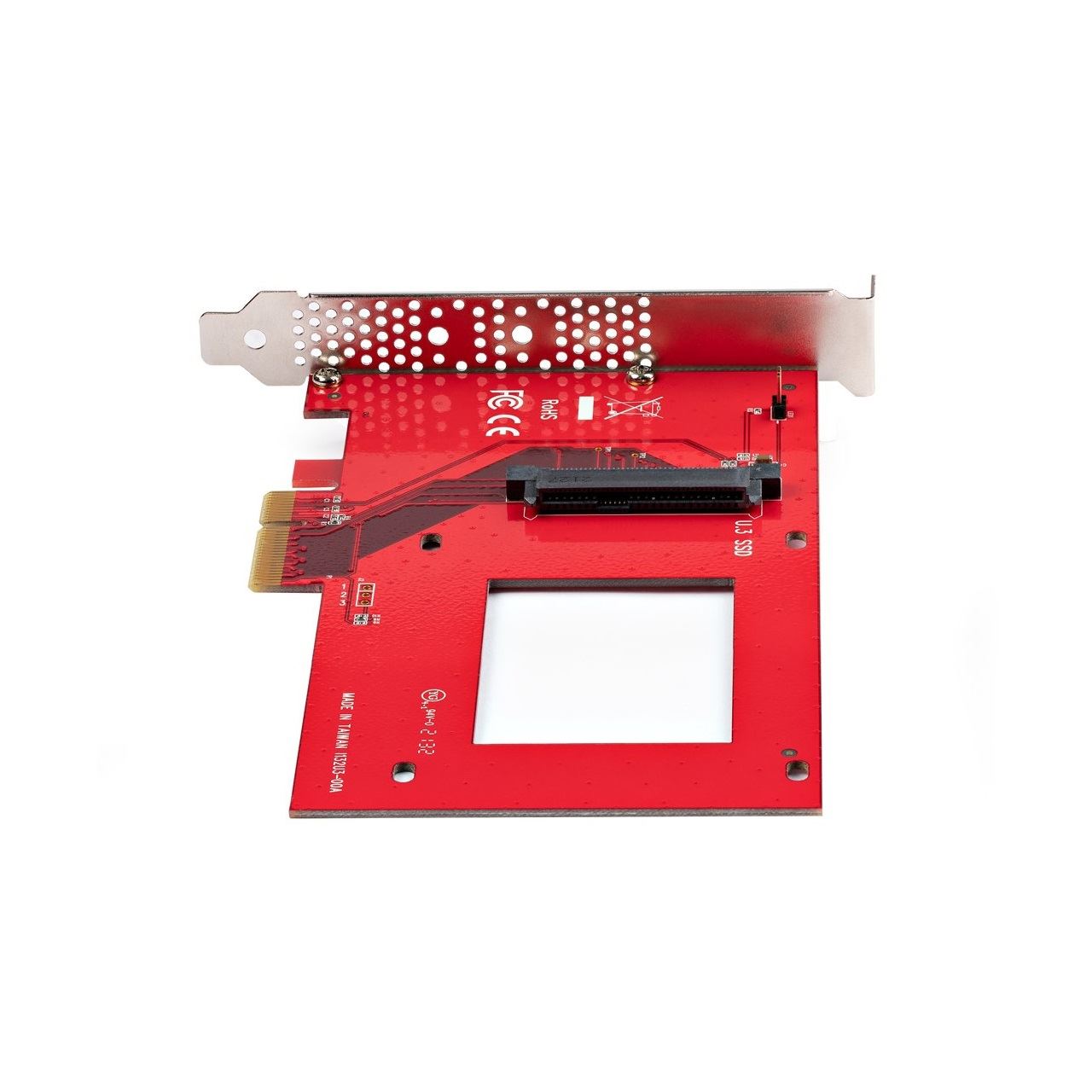 StarTech.com U.3 PCIe Adapter Karte, PCIe 4.0 x4 Adapter für 2.5 Zoll U.3 NVMe SSDs, SFF-TA-1001 PCI Express Add-in Karte, U 3 NVMe SSD auf PCIe Adapterkarte, U.3 NVMe Adapterkarte, OS Unabhängig. Hostschnittstelle: PCIe, Ausgangsschnittstelle: U.3. Produktfarbe: Rot, LED-Anzeigen: Aktivität, Leistung, Mittlere Betriebsdauer zwischen Ausfällen (MTBF): 21693912 h. Unterstütze Datenträgerhöhe: 5,7,9.5,12.5,15 mm. Breite: 90 mm, Tiefe: 154 mm, Höhe: 1,5 mm. Verpackungsbreite: 215 mm, Verpackungstiefe: 155 mm, Verpackungshöhe: 30 mm